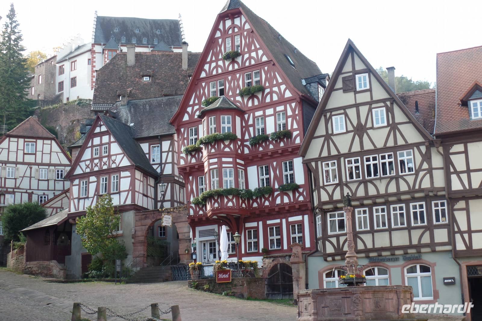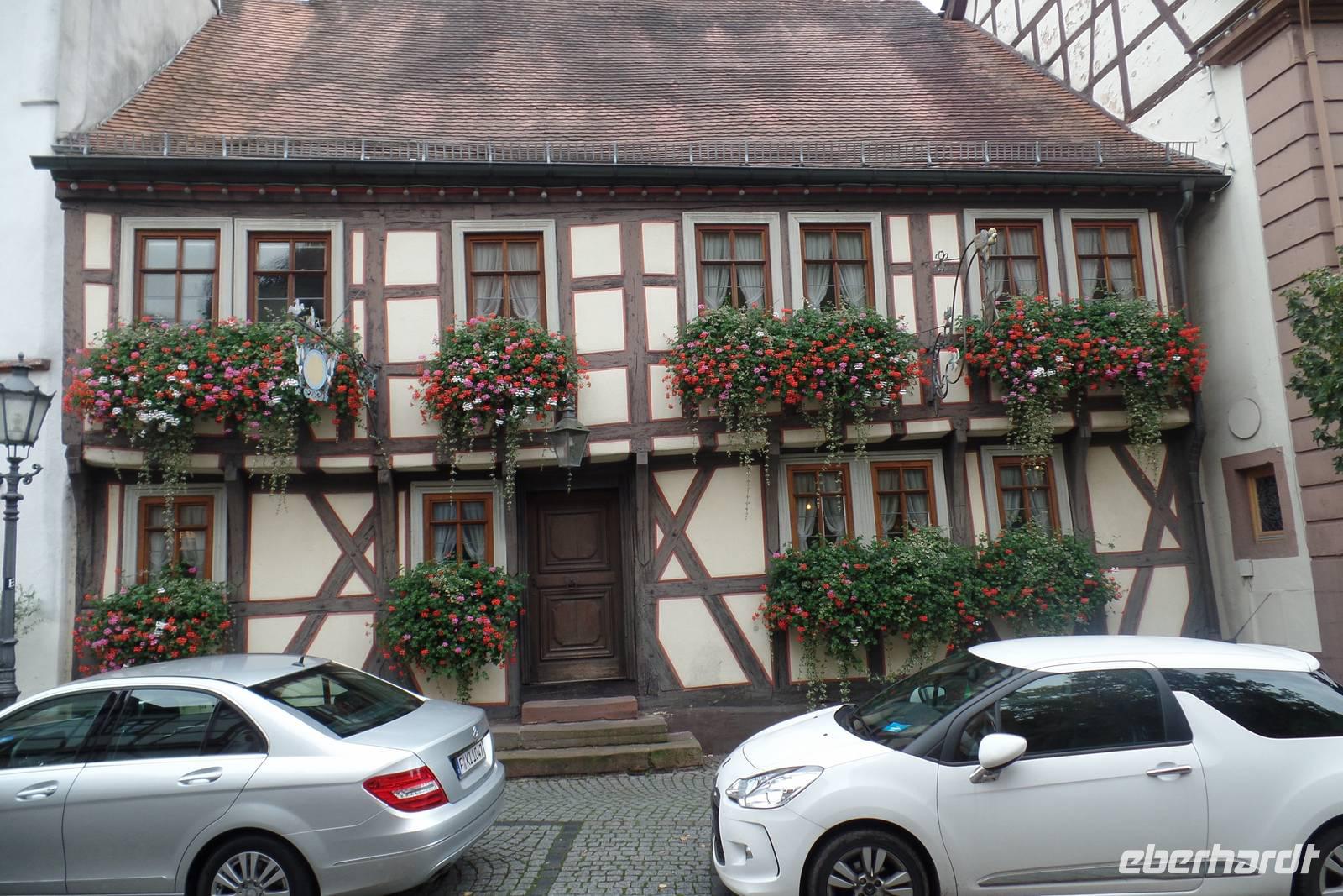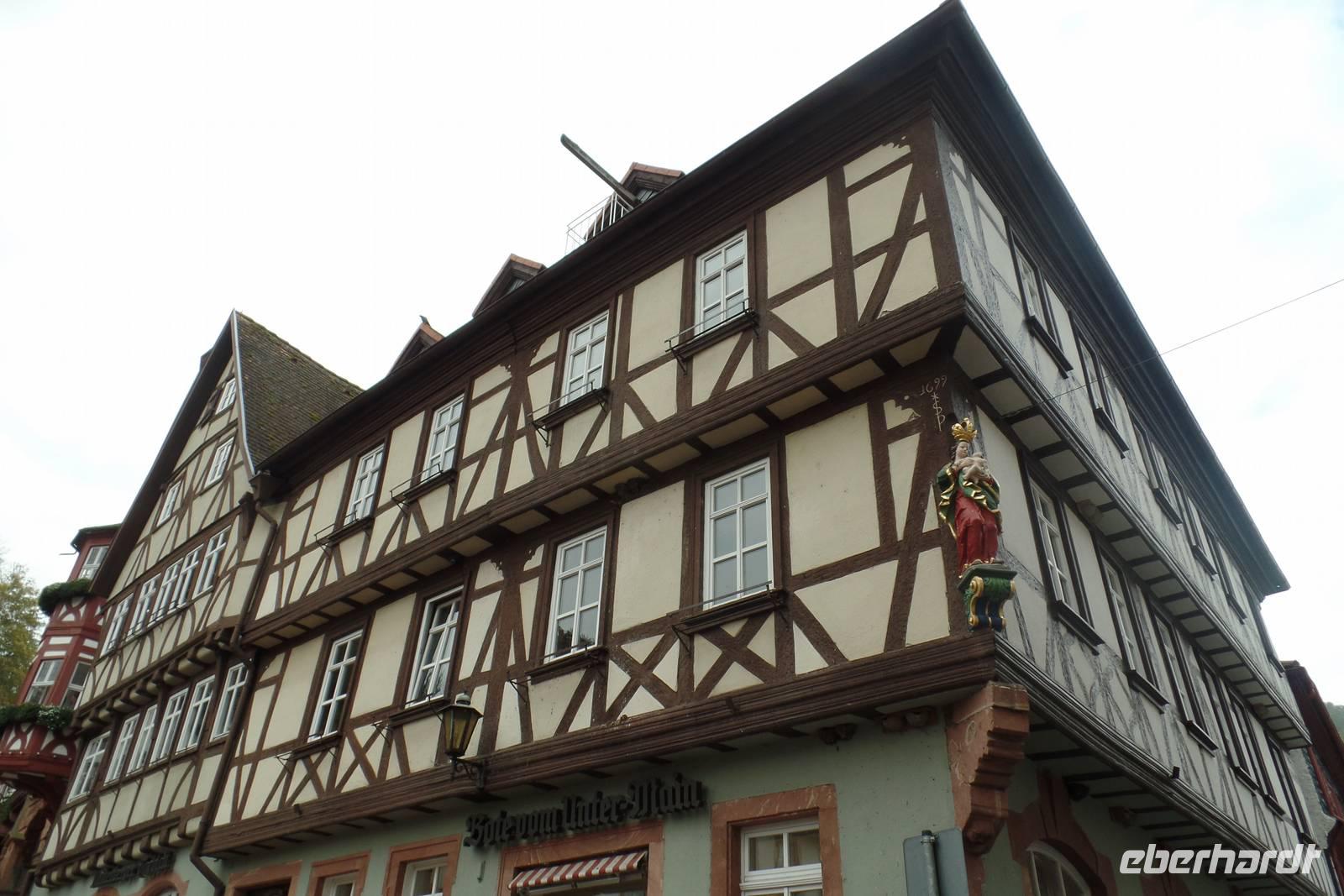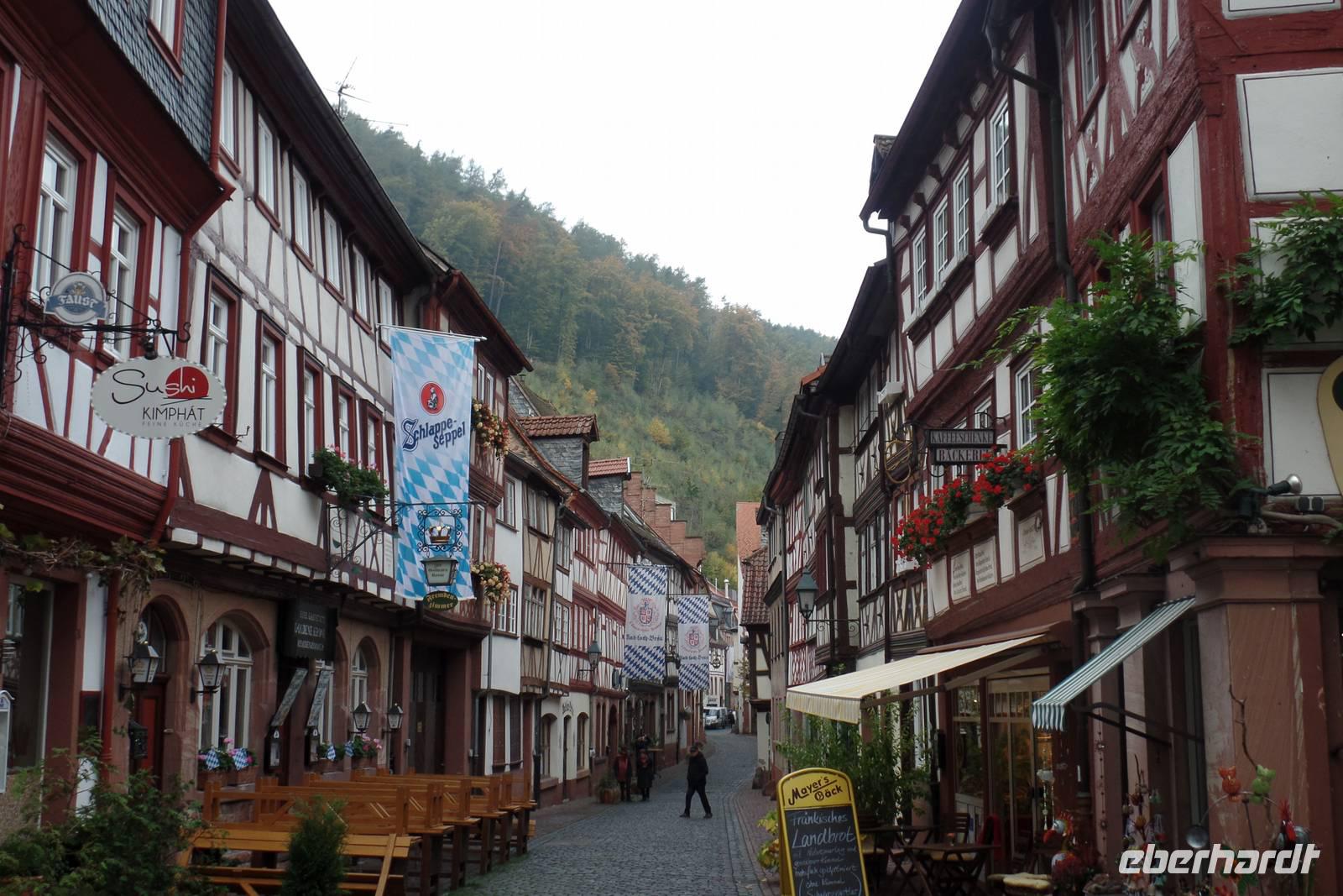 Heute besuchten wir die Stadt Miltenberg. Sie blickt auf eine bewegte Geschichte zurück. Weinbau, Weinhandel, Schifffahrt, Fischerei, Holz- und Steinindustrie bildeten neben Handel und Handwerk die wichtigsten Wachstumsmotoren. Die günstige Lage an der alten Handelsstraße von Nürnberg nach Frankfurt und das Stapelrecht bescherten Miltenberg schon früh wirtschaftliche Blütezeiten. Bayern. Das mittelalterliche Stadtbild konnte bis heute erhalten werden. Man erkennt die frühere Bedeutung Miltenbergs an den prächtigen Fachwerkbauten wie am Alten Marktplatz - besser bekannt als "Schnatterloch" - oder am "Gasthaus zum Riesen", der ältesten Fürstenherberge Deutschlands. Das Schwarzviertel, der älteste Teil der Stadt, schmiegt sich eng zwischen Main und Greinberg. Während der Stadtführung lauschten wir Geschichten und Legenden.