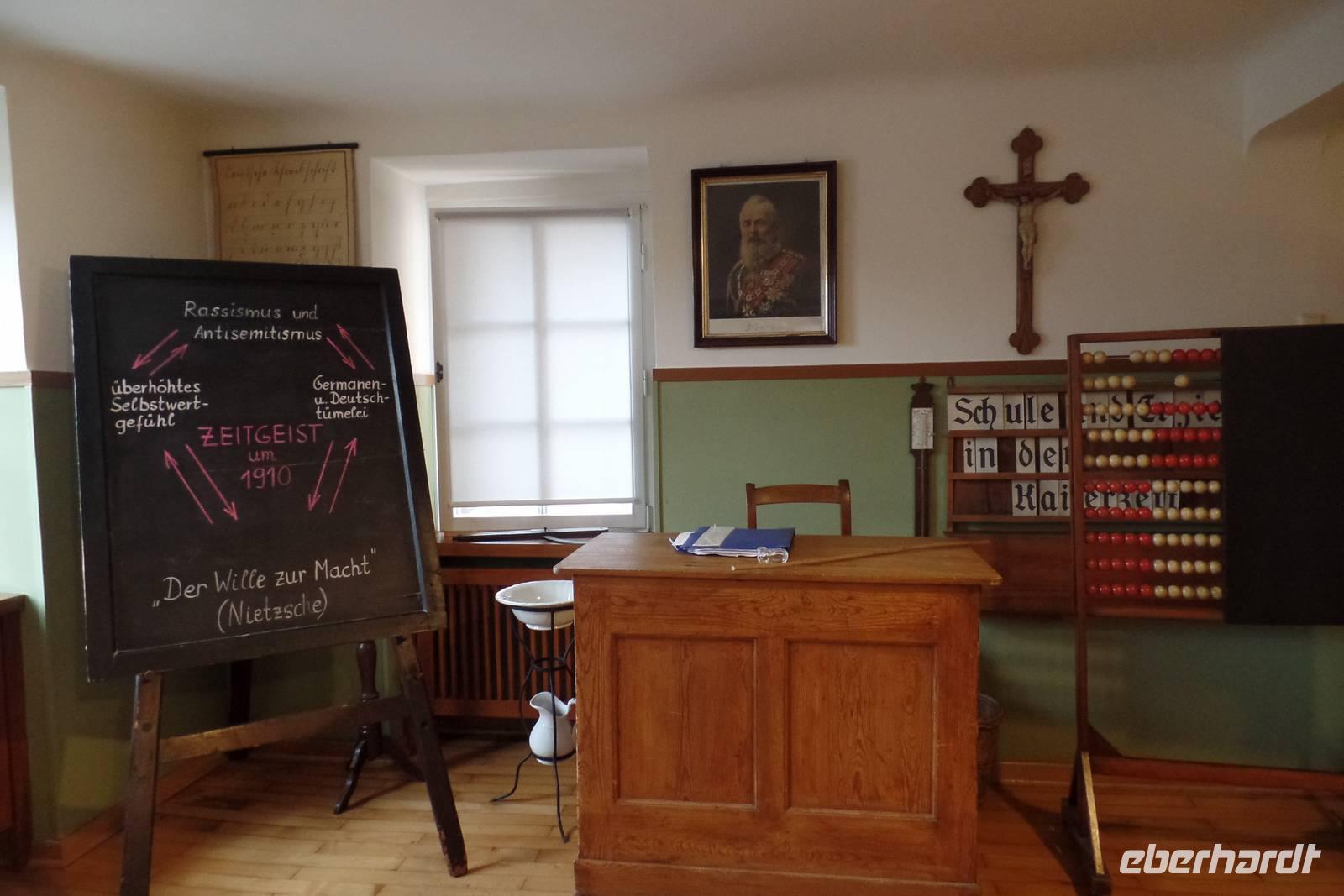 Unser heutiger Tag stand unter dem Motto „Von der Schulbank ins Mittelalter". Wir fuhren nach Lohr und besuchten das Schulmuseum. Wir nahmen in einem Klassenzimmer in alten Schulbänken Platz. Unser Lehrer Herr Stenger erzählte uns einiges über den Unterricht aus alten Zeiten bzw. auch aus heutiger Zeit, da er selbst als Schuldirektor gearbeitet hat. Exponate aus den verschiedenen Epochen waren auf mehreren Etagen ausgestellt.