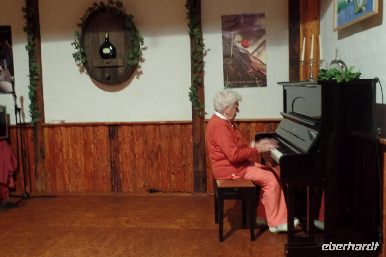 Anschließend reisten wir in das Fränkische Weinland nach Dürrfeld. Herr Runge erwartete uns schon. Im historischen Rathaus konnten wir alle gemeinsam während eines Sektempfang noch einmal alle anstoßen. Im Weingut „Runge" ging es dann zu einer „Musikalischen Weinprobe". Als „Singender Winzer" nahm uns Herr Runge mit Liedern aus der eigenen Feder mit auf eine unterhaltsame musikalische Reise durch die Weinvielfalt Frankens. In der gemütlichen Weinstube konnten wir eine herzhafte fränkische Häckerbrotzeit und dazu sechs erlesene Frankenweine genießen. Das musikalische Programm begleitete uns dabei. Es war ein sehr schöner Nachmittag mit viel Spaß und Guter Laune, der uns noch lange in Erinnerung bleiben wird!