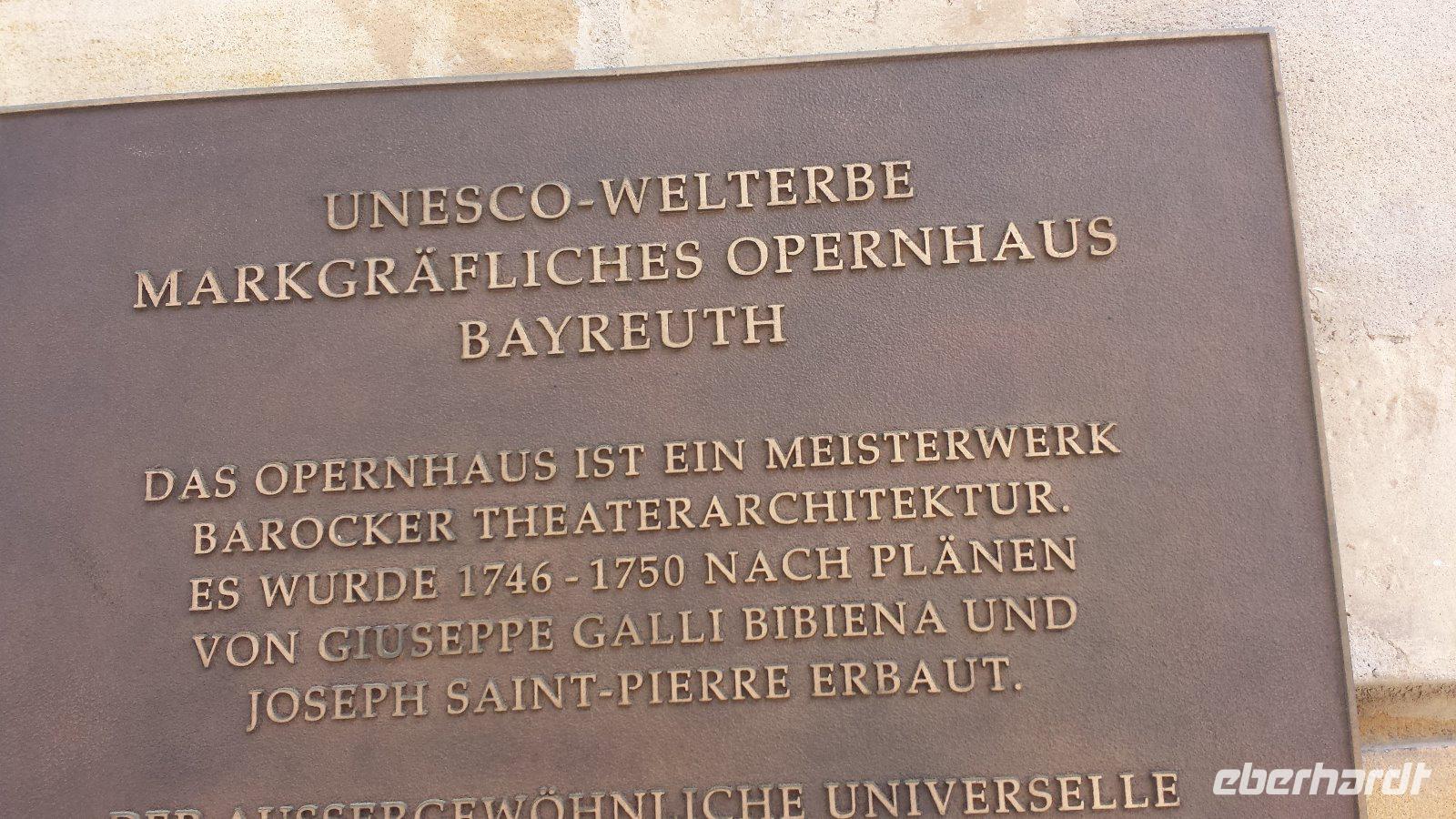 Das markgräfliche Opernhaus in Bayreuth ist ein Theatermonument von Weltrang. Es konnte verglichen werden mit den größten Opernhäusern der Zeit in Wien und Dresden. Seit 2012 gehört bes zum UNESCO Weltkulturerbe.Markgräfin Wilhelmine von Brandenburg-Bayreuth, eine Schwester Friedrichs des Großen, liess es anläßlich der Hochzeit ihrer Tochter, Elisabeth Friederike Sophie mit dem Württemberger Herzog Carl Eugen , die 1748 stattfand, errichten, die Bauzeit betrug 4 Jahre. Sie selbst war eine hochbegabte Künstlerin, komponierte auch und lebte dies aus, indem sie ein internationales Endemble von Sängern am Bayreuther Hof vereinte.