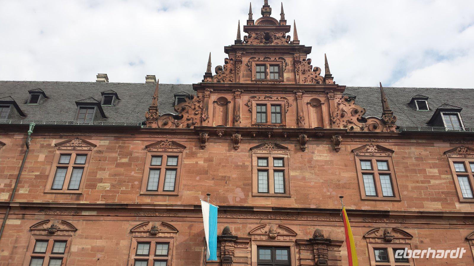 Auch Holger nahm an dem Stadtrundgang teil, war topp informiert und interessiert, war klasse :-)Wir erfuhren, dass die gewaltige Vierflügelanlage zu den bedeutendsten Schlossbauten der Renaissance gehört und von dem Straßburger Baumeister Georg Ridinger anstelle der mittelalterlichen Burg, unter Einbeziehung des Bergfrieds aus dem 14.Jh., 1605 bis 1614 errichtet wurde.Das Schloss diente bis 1803 den Mainzer Erzbischöfen und Kurfürsten als zweite Residenz , von 1814 bis 1918 war es im Besitz der Bayrischen Krone.