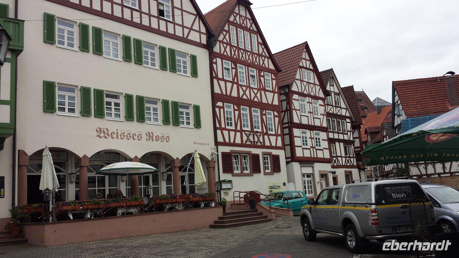 45 Minuten dauerte unsere Fahrt durch den schönen, saftig grünen Spessartwald. Auch das Wetter zeigte sich wieder von seiner besten Seite, die Stimmung war Spitze, also was sollte schief gehen ?! Vorbei ging es u.a. an alten, schick gestalteten Fachwerkhäusern in den Orten, die mit viel Liebe neu hergerichtet worden sind, stehen sie doch auch sehr oft unter Denkmalschgutz.