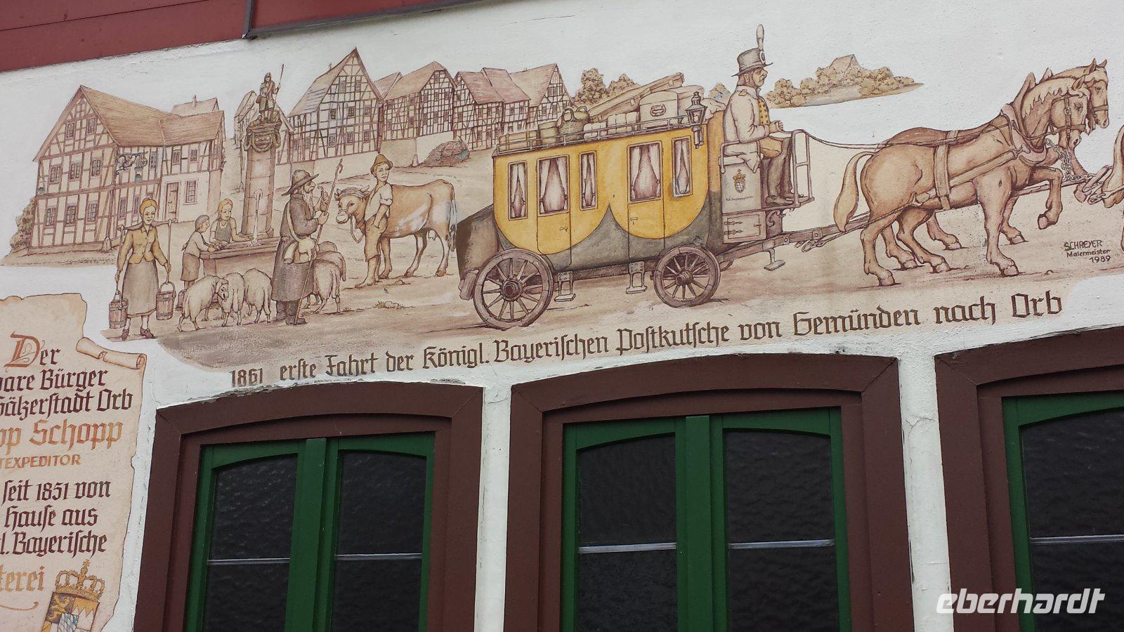 Dieses Wirtshaus gibt es nicht mehr im Original, auf dem Weg zum Schloss findet man ein nachgebautes „ Wirtshaus im Spessart"( Gaststätte und Pension ), mehr dazu erfahren wir auf unserer morgigen Spessartrundfahrt.