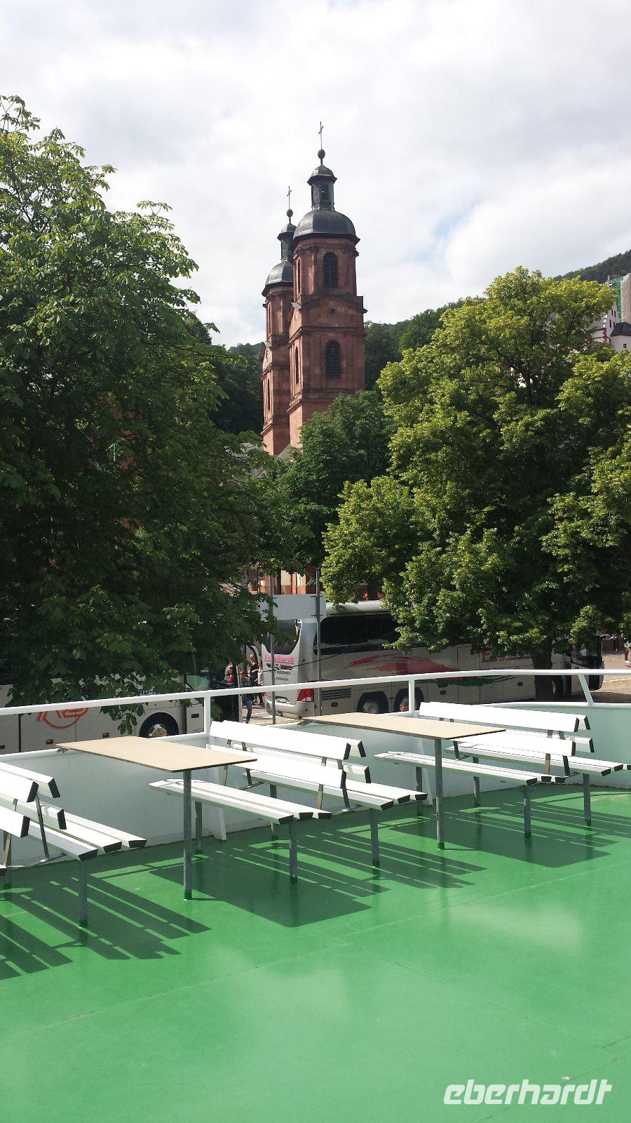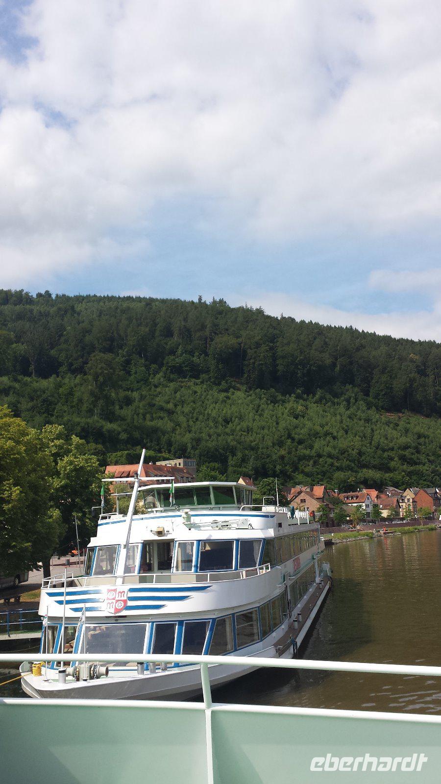 Danach fuhren wir mit dem Bus weiter nach Miltenberg, die Fahrt dauerte ca. 40 Minuten. Wir parkten direkt an der Schiffsanlegestelle unterhalb der Pfarrkirche, wo wir 11 Uhr ablegten mit unserem Schiff zur dortigen Rundfahrt auf dem Main.