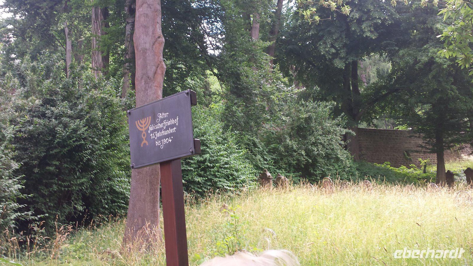 Anfangs besuchten wir auch den Alten Jüdischen Friedhof, wo wir auch die alte Stadtmauer finden konnten. Es gab traurige Informationen dazu, ebenso wie zur Hexenverbrennung , die im Mittelalter dort Gang und Gebe war, die lapidarsten Aussagen beschuldigten die Menschen der Hexerei und sie wurden verbrannt. Z.B. wenn die Ernte auf Grund des schlechten Wetters zunichte gemacht wurde und eine Frau oder auch ein Mann vielleicht vorher nur mal geäußert hatte, dass es wohl in den nächsten Tagen viel Regen geben wird, vlt. aufgrund von bestimmten Luftströmungen, wurden diese als Hexe oder Hexer bezeichnet und öffentlich hingerichtet. Unglaublich, Frau Knüpf konnte das mit Worten sehr anschaulich aber auch erschreckend darstellen. Auf unserem Rundgang gab es Informationen zur Mildenburg, die am Ende des Boulevards über der Stadt thront, über die Entstehung der ersten Apotheken, passend dazu führte sie uns an einen prächtigen Kräutergarten. Natürlich hatten die wunderschönen Fachwerkhäuser es uns und auch ihr besonders angetan, sie bemerkte unser Staunen und hatte viel Hintergrundwissen dazu. Wir kamen auch vorbei am Gasthaus „ Zum Riesen „, der mir von innen, ich „mußte" ihn besuchen, vorkam wie das Hofbräuhaus in München, voll besetzt, sehr laut und es duftete nach Schweinsbraten, Frau Knüpf bestätigte mir die Empfindung, das hätten mehrere Gäste schon bemerkt. Dieses Gasthaus soll eines der ältesten Gasthäuser Deutschlands sein, die erste urkundliche Erwähnung stammt aus dem Jahr 1158. Am Gasthaus befindet sich ein Brauerstern an einem eisernen Gestell, das auch den Riesen zeigt, der darauf hinweist, dass der Riesen seit dem 19. Jh. ein Braurecht besitzt.