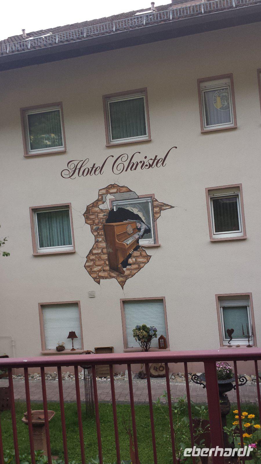 Unser Hotel „ Christel" hat sich seit dem Entstehen 1963 ganz schön gemausert und ist ein toll funktionierendes Familienunternehmen nun schon über einige Generationen hinweg, die Gastlichkeit und Freundlichkeit spürt man jeden Tag auf's Neue. Es besitzt 50 Gästezimmer, die durchaus modern eingerichtet sind.)Nun reichte ich im Bus die Liste für das Abendbrot durch, es gab drei Auswahlmöglichkeiten, danach telefonierte ich mit dem Hotelchef, Herrn Spieler, der uns auch bei Ankunft freundlich begrüßte, gab die Bestellung durch und kündigte unser pünktliches Eintreffen an.