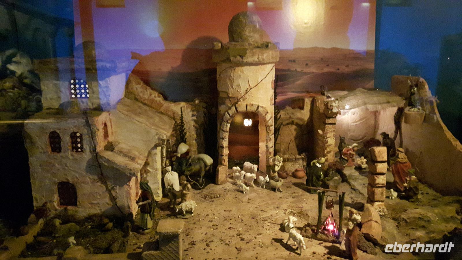 Nach einem reichhaltigen Frühstück machten wir uns in das nur ca. 20 Kilometer entfernte Aschaffenburg auf. Hier besichtigten wir im Rahmen einer Führung zunächst die wohl größte und zu Recht bekannteste Attraktion der Stadt, das Schloss Johannisburg. Bereits Anfang des 17. Jahrhunderts ließen es die größenwahnsinnigen Mainzer Kurfürsten und Erzbischöfe als riesige Renaissance-Residenz errichten. Die insgesamt vier rotsandsteinernen Gebäudeflügel bringen es immerhin auf vierhundert Zimmer! Natürlich hätte dies unseren zeitlichen Rahmen bei weitem gesprengt und so sahen wir nur einen kleinen Teil davon! Besonders sehenswert war dabei die weltweit größte Sammlung von aus Kork angefertigten Architekturmodellen. 45 Modelle luden unter dem Titel "Rom über die Alpen tragen" zu einem interessanten Rundgang durch das antike Rom ein. Besonders beeindruckend war die Tatsache, wie detailgenau die antiken Architekturen Roms zu sehen waren, beispielsweise das Kolosseum! Zu guter Letzt bewunderten wir den gigantischen Altar der Schlosskapelle, welche mithilfe modernster Technik in einem besonderen Licht erstrahlte. Eine faszinierende Licht-Ton-Installation brachte die Alabasterskulpturen und Relieffiguren des Altars zum Sprechen und macht in der Fülle der Details die wesentlichen inhaltlichen Zusammenhänge gut sichtbar. Zudem gab es zusätzliche Informationen zu den Materialien und Restaurierungen, die wiederum einen Einblick in die Herstellungstechnik und das wechselhafte Schicksal dieses im Zweiten Weltkrieg stark beschädigten Kunstwerks gaben. Fazit der Besichtigung war, dass ein solch geschichtsträchtiges Schloss ganz sicher seines Gleichen sucht! Anschließend erlebten wir zusätzlich zum eigentlichen Programm noch eine kleine Führung rund um den hiesigen Schlossplatz, ehe uns Zeit für individuelle Entdeckungen verblieb. Sogar der Besuch des Aschaffenburger Weihnachtsmarktes war in diesem Jahr noch möglich, da dieser erstmalig so lange geöffnet hatte. Am Nachmittag besuchten wir dann die Aschaffenburger Krippenausstellung, der von einem Verein betrieben wird. Mit besonderem Stolz wurde uns die mechanische Vereinskrippe präsentiert, denn vor vielen Jahren wurde die Idee geboren, das Geburtsgeschehen Jesu Christi hier direkt nach Aschaffenburg zu holen. Nach und nach entstanden viele historische Gebäude Aschaffenburgs - zum Teil auch fast vergessene Anwesen. Durch die jährlichen Erweiterungen wurde die Krippe immer größer und erstrahlt heute in einem besonders faszinierenden Ambiente!