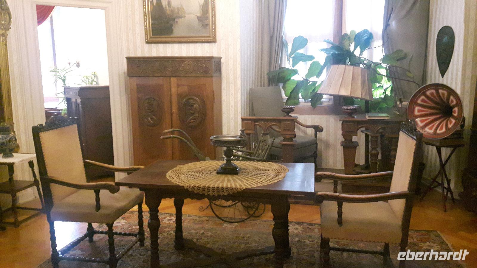 Auch heute wurden wir wiederum mit einem üppigen Frühstück verwöhnt und wir starteten demnach gut gelaunt in diesen 2. Weihnachtsfeiertag! Am Vormittag stand die fränkische Schlösser-Kultur im Mittelpunkt, denn wir wurden im ländlichen Barockschloss Zeilitzheim zu einer interessanten Führung erwartet. Frau von Halem, die Schlossherrin persönlich, nahm uns im Empfang und begleitete uns durch einen Teil ihres im 17. Jahrhundert erbauten Anwesens. Es gehört schon so einiger Enthusiasmus dazu, solch ein Schloss mit all seinen Räumlichkeiten zu unterhalten! Später fuhren wir dann mit dem Bus zum Weingut "Runge", wo der gemütliche Teil des Tages anstand. Außerdem war es Mittagszeit und das war der perfekte Anlass, um uns mit einer deftigen Steigerwälder Brotzeit zu stärken und eine Grundlage für all das kommende zu schaffen. Wir waren nämlich zu einer Probe mit sechs verschiedenen fränkischen Weinen geladen und da kam uns diese deftige Mahlzeit ganz gelegen. Gerald Runge, der sogenannte "Singende Winzer", sorgte mit Hilfe seiner Frau Heike und einer großen Auswahl an Liedern für die nötige Stimmung! Es war einfach gemütlich, alles liebevoll dekoriert und schließlich saßen wir auch noch unter einem "Himmel voller Geigen" - nichts drängte uns also zum Aufbruch und so ließen wir diesen Tag ganz entspannt ausklingen... Der Frankenwein schmeckte und erst als er alle Gläser geleert waren, fuhren wir nach Heimbuchenthal zurück. Ein toller Ausklang dieser schönen Weihnachtsreise!