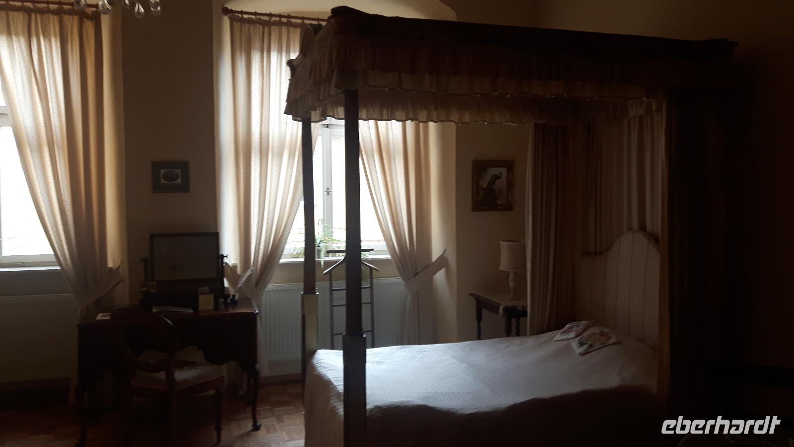 Das Wetter versprach heute leider nicht viel Gutes, aber dennoch sahen wir auch diesem Tag positiv entgegen. Nach einer gemütlichen Fahrt durch den schönen Spessart gelangten wir in das hessische Erbach, bereits im Odenwald gelegen. Es regnete unentwegt, aber das hielt uns nicht davon ab, das im 14. Jahrhundert erbaute und detailgetreu restaurierte, historische Schloss zu besichtigen - das perfekte Programm, denn hier konnte uns das schlechte Wetter schließlich nichts anhaben! Zwei nette Führerinnen besichtigten mit uns das interessante Wahrzeichen Erbachs und erklärten uns die einzelnen Räumlichkeiten im Schloss. Besonders beeindruckend waren die unglaublich vielen geschichtlich interessanten, nahezu einzigartigen Sammlungen im Stammsitz der Erbacher. Hier hätte man ganz sicher noch einige Stunden mehr zubringen können, aber wir wollten uns lediglich einen Überblick verschaffen und außerdem hätte es unsere Zeitplanung gesprengt! So verblieb noch etwas Zeit für einen kleinen Bummel durch dieses beschauliche Städtchen, bevor wir ins benachbarte Michelstadt aufbrachen. Gemeinsam spazierten wir an bezaubernden Fachwerkhäusern vorbei durch die verwinkelten Gassen der historischen Altstadt. Schließlich erreichten wir den berühmten Marktplatz mit seinem einzigartigen Fachwerk-Rathaus, das diesem Ort eine ganz besondere Atmosphäre verleiht. Zudem gab es unheimlich viele kleine Geschäfte bzw. Cafés, die zum Verweilen einluden. Am frühen Abend waren wir rechtzeitig in Heimbuchenthal zurück und freuten uns auch heute auf ein leckeres Abendessen. Es gab auch heute nochmals die Möglichkeit, die klassische Filmvorführung "Das Wirtshaus im Spessart" zu erleben.
