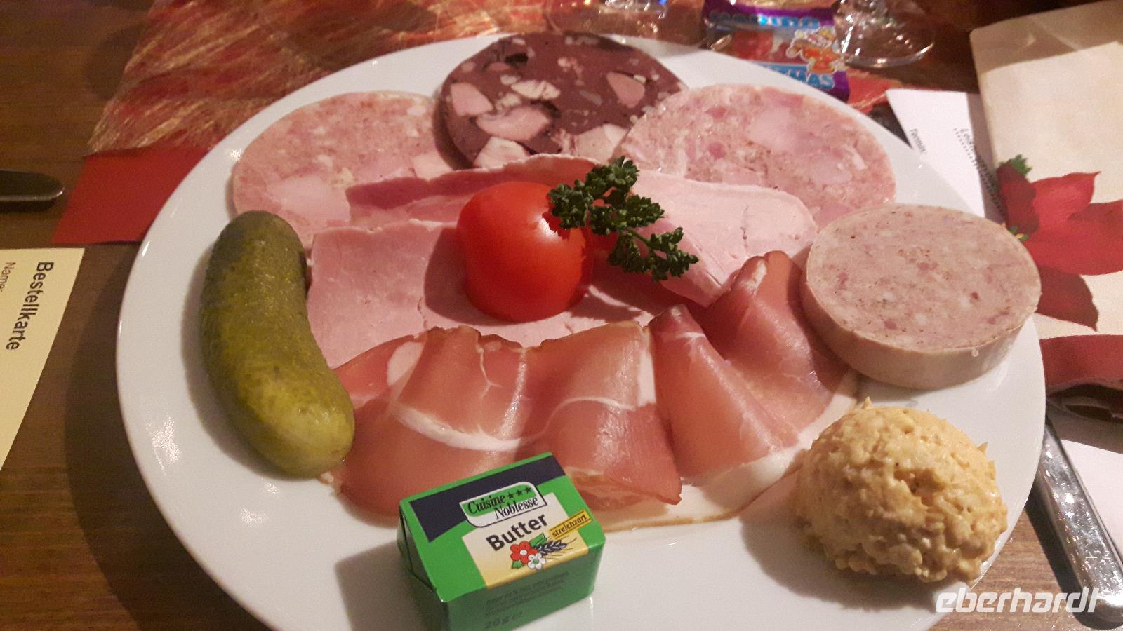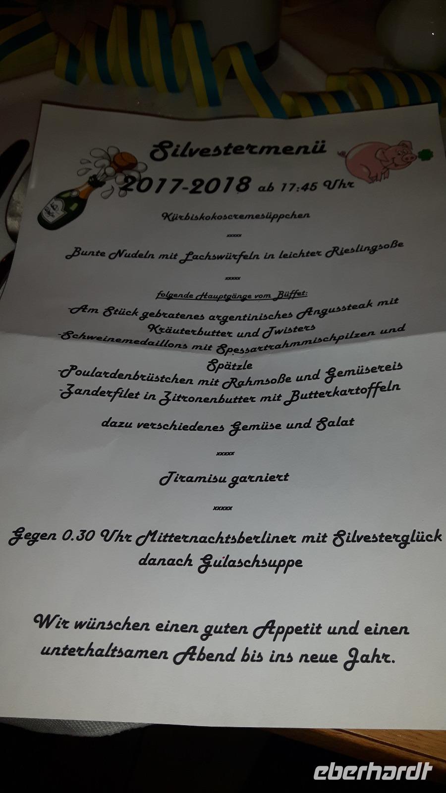 Ein letztes Mal im alten Jahr genüsslich frühstücken... Danach führen wir entlang der Spessart-Höhenstraße in Richtung Norden und erreichten das hessische Bad Soden-Salmünster, übrigens nicht zu verwechseln mit Bad Soden im Taunus! Zuerst kamen wir in Begleitung unserer Stadtführerinnen zur Spessart-Therme. Weiter ging es durch die Altstadt zum Schloss, welches eigentlich derzeit gar nicht für Besucher zugänglich ist! Dieses war durchaus sehenswert, nur schade dass es kaum genutzt wird! Die Mittagszeit gestalteten wir nach eigenen Wünschen, es gab so einige Cafés die auch heute geöffnet waren und zum Verweilen einluden. Gegen 14 Uhr waren wir dann zur Jahresabschlussfeier in der Brunnenpassage Bad Sodens geladen, die mit Gesang und Blasmusik sowie einigen Worten aus der Kommune versehen war. Es war eine nette Veranstaltung zum Jahresende! Am Abend verwöhnte uns das Hotel "Christel" in Heimbuchenthal mit einem leckeren Silvesterbuffet. Ein Alleinunterhalter mit Musik und Gesang sorgte für die nötige Stimmung und so verging die Zeit rasend schnell. Um Mitternacht wurde mit Sekt angestoßen und diverse Glückwünsche wurden ebenso übermittelt. Zudem wurden wir mit einem echt aufwendigen Feuerwerk hinter unserem Hotel verwöhnt und konnten uns mit süßen Pfannkuchen und deftiger Gulaschsuppe nochmals stärken. Nochmals wurden die Tanzbeine geschwenkt, ehe wir uns am frühen Morgen müde in unsere Betten verabschiedeten.