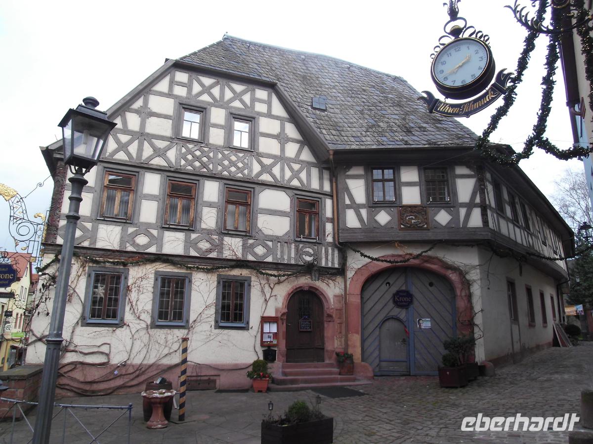 Schon geht es auf Mittag zu, und so begeben wir uns ins nahe Michelstadt. Das winzige Städtchen wartet mit einem der berühmtesten Rathäuser Deutschlands auf. Es stammt von 1484 und steht im Erdgeschoss auf einer offenen Tuchhalle aus mächtigen Eichenbalken. Nach einem kleinen Rundgang durch das Städtchen begeben sich fast alle Gäste zu Kaffee und Kuchen in die lockenden Cafes und Restaurants.