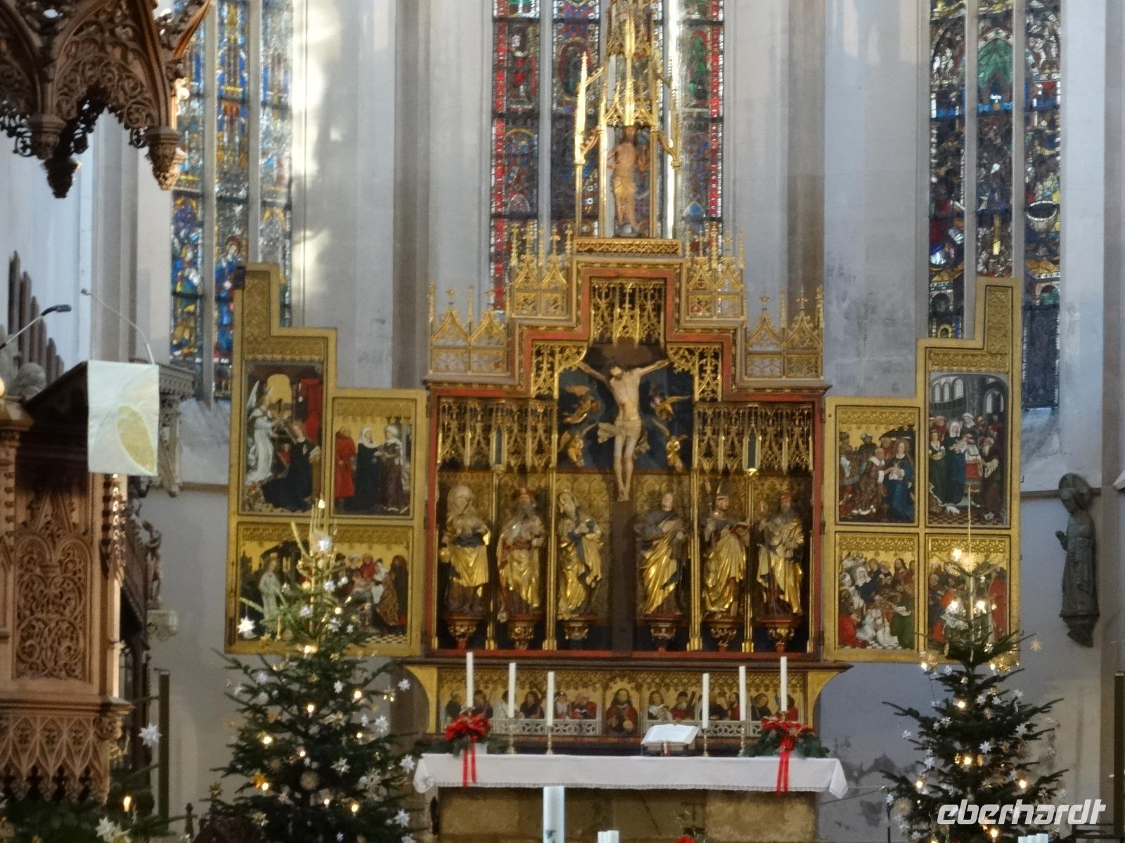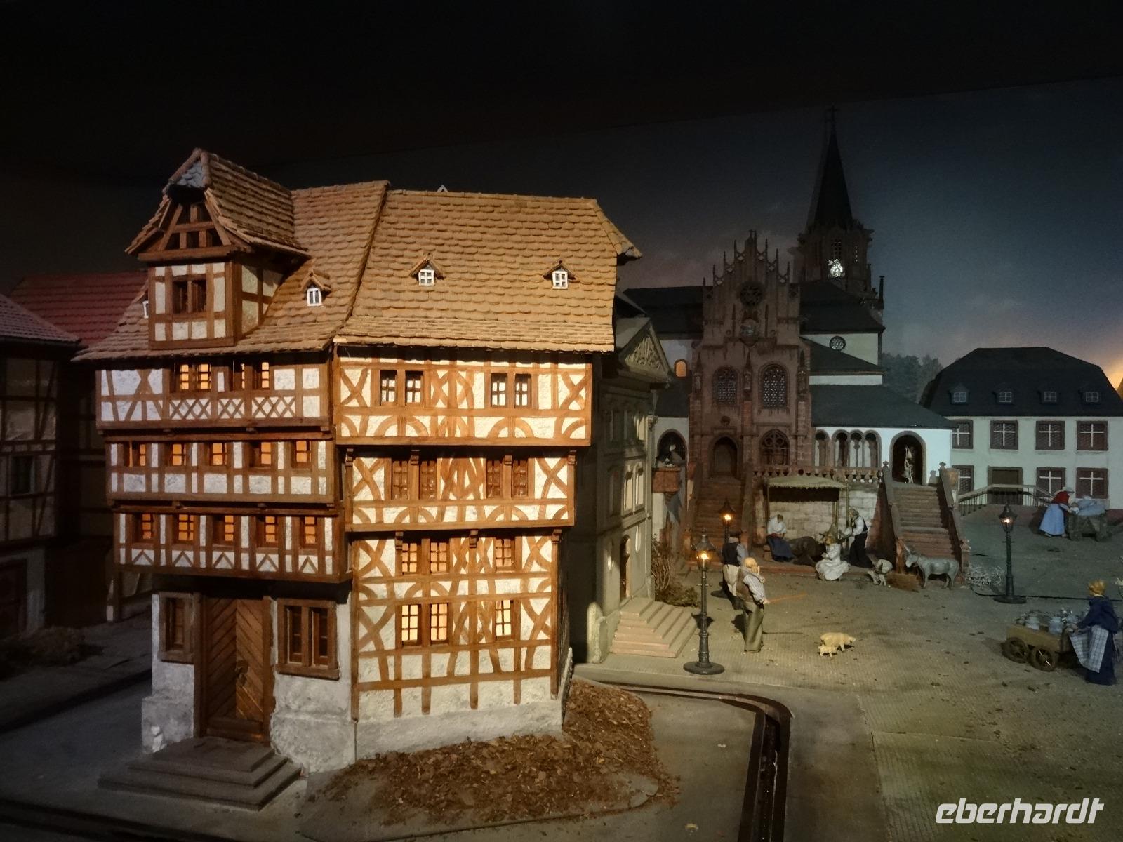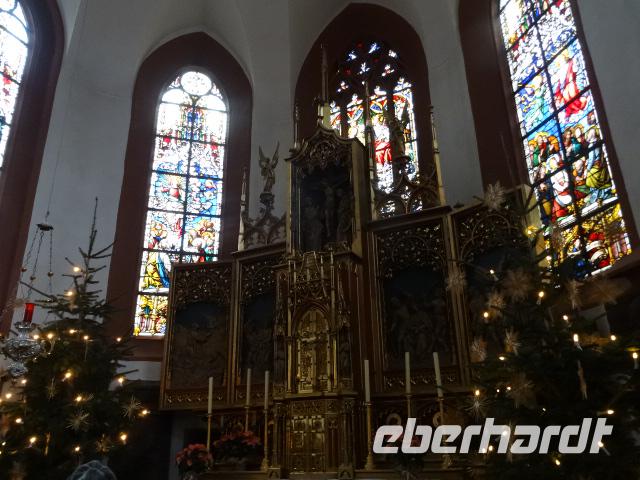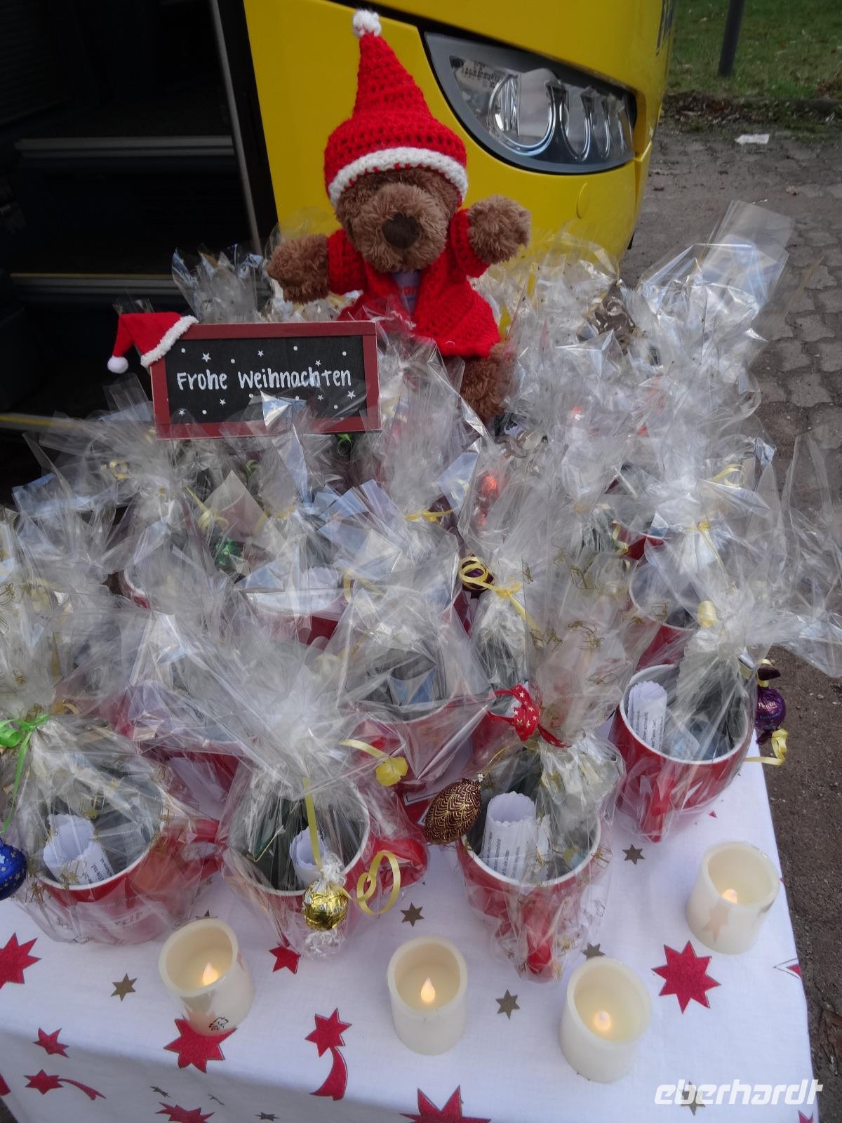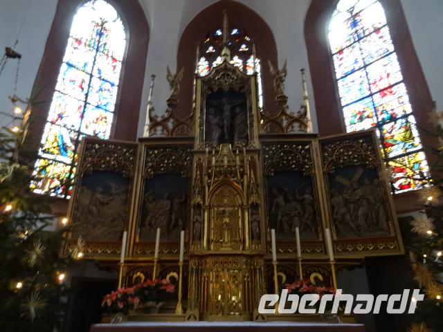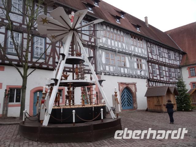 Es geht mit dem Bus entlang des Maintales in das historische Mildenberg am linken Knie des Mainviertels zwischen Spessart und Odenwald gelegen. Am Mainufer am Parkplatz an der Kirche empfingen uns zwei Stadtführer. In zwei Gruppen aufgeteilt spazierten wir in die wunderbare Altstadt. Schöne mittelalterliche Fachwerkhäuser präsentierten sich uns. An der Kirche vorbei zum Alten Marktplatz, mit Blick zum Schnatterloch, gingen wir durch die kleinen Gassen. Mildenberg kann auf eine 3.500 Jahre alte Geschichte zurückblicken, diese wurde an vielen Häusern mit guten Geschichten vermittelt. Das markanteste Gebäude der Stadt, das Gasthaus zum Riesen wurde entsprechend mit Zunftzeichen und Giebeldarstellung sehr gut erklärt. Der Abschluss fand dann am Engelsplatz statt. Die Stadt bezauberte uns und wir schlenderte noch etwas durch die engen Gassen. Am frühen Nachmittag erreichten wir unser Hotel im Heimbuchental. Um 15.00 Uhr erwartete uns die Kinderchristmette in der Neuen Johanneskirche. Diese Kindermette war sehr gut besucht, vor allen durch viele Familien mit Kindern. Es wurde das Krippenspiel aufgeführt. Schade das die Kinderstimmen sehr schlecht zu verstehen waren, trotz Mikrofon. Nach der Mette erwartete uns ein schönes Weihnachtsgeschenk. Der Weihnachtsmann war vorbeigekommen und hatte für jeden Gast ein schöne „Große Eberhardt Tasse" gebracht.
