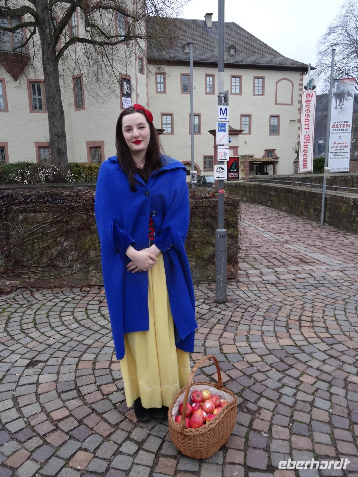 Die Reise zum 1. Weihnachtsfeiertag führte uns nach Lohr am Main. Am Hauptplatz empfing uns „Schneewittchen" mit Äpfeln. Sie erzählte ihre Geschichte zum Schloss, sie wurde hier 1725 geboren, als Maria Sophia Margarethe Catarina Freifräulein von Erthal. Sehr interessant für uns alle. Ein leckerer Apfel wurde überreicht - war er vergiftet ? So manch einer überlegte, aber es stellte sich heraus, er war sehr lecker und nicht vergiftet. Das Schneewittchen verabschiedete sich von uns und wir gingen zur Führung ins Spessart-Museum. Eine sehr interessante Führung führte uns in die Geschichte über Leben der Menschen in der Vergangenheit. So wurde das Herz-Häuschen (WC) aufgesucht, was seine persönliche Geschichte berichtete. Der größte Ausstellungsbereich für die Glasherstellung wurde uns mit einer „Klickerflasche" präsentiert. Aber auch viele praktische Gläser und Flaschen fanden Anklang. Das beste dabei war noch das „Spieglein, Spieglein an der Wand ..." jeder versuchte es damit, aber das Ergebnis ... ? Es war eine lustige Unterhaltung. Das Spessartmuseum wurde bereits im Jahr 1972 untergebracht und ist eine wahre Schatzkammer. Wir waren von der Vielfalt überrascht. Im Anschluss wurde noch durch die recht ruhige Altstadt gebummelt bevor uns der Bus wieder abholte. Da es doch sehr kühl war, gab es auf Wunsch Grog, Schokolade mit Rum oder Kaffee mit Amaretto, damit wurde uns sofort warm. Zurück in das Heimbuchental fuhren wir weiter auf den Spuren der Gebrüder Grimm bzw. auf den Spuren „das Wirtshaus im Spessart". In Mespelbrunn steht das über 600 Jahre alte Schloss. Wir spazierten zum Schloss, um es von außen zu besichtigen. Leider ist eine Innenbesichtigung im Winter nicht möglich. Da das Wetter schön war, ging es noch bis zur Grabkappele weiter, ein schöner weiter Blick auf das Tal mit dem Ort Mespelbrunn. Einige Gäste schlenderten sogar bis zum Hotel zurück, ein kleiner Spaziergang an frischer Luft und das Weihnachtmenü schmeckte uns noch besser.