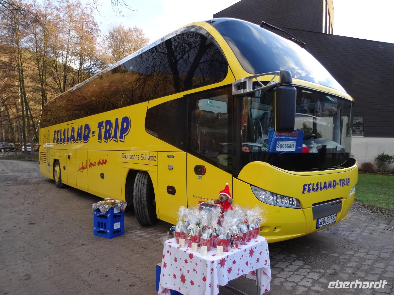 Am Morgen des 22.12.2018 starten pünktlich 30 Reisegäste zur Weihnachtsreise mit Eberhardt-Travel im 4* Reisebus von Felsland Trip ins Heimbuchenthal Hotel „Christel"