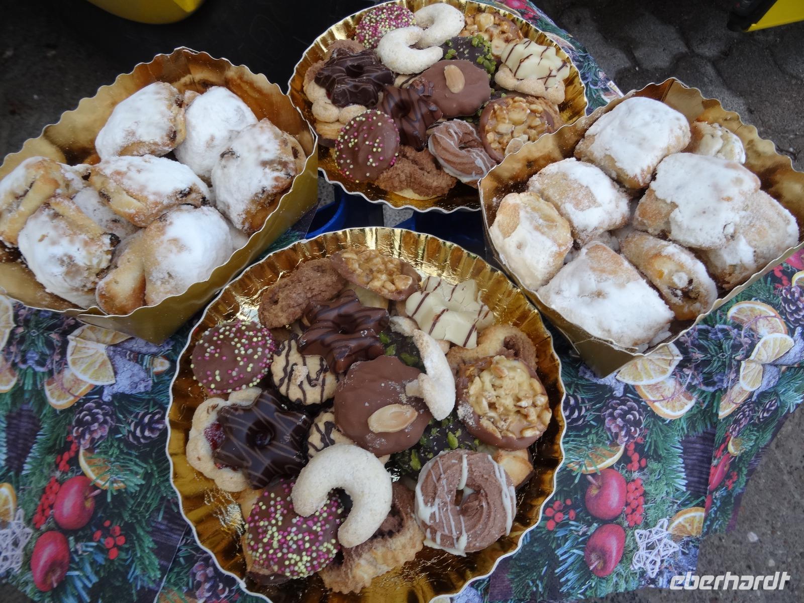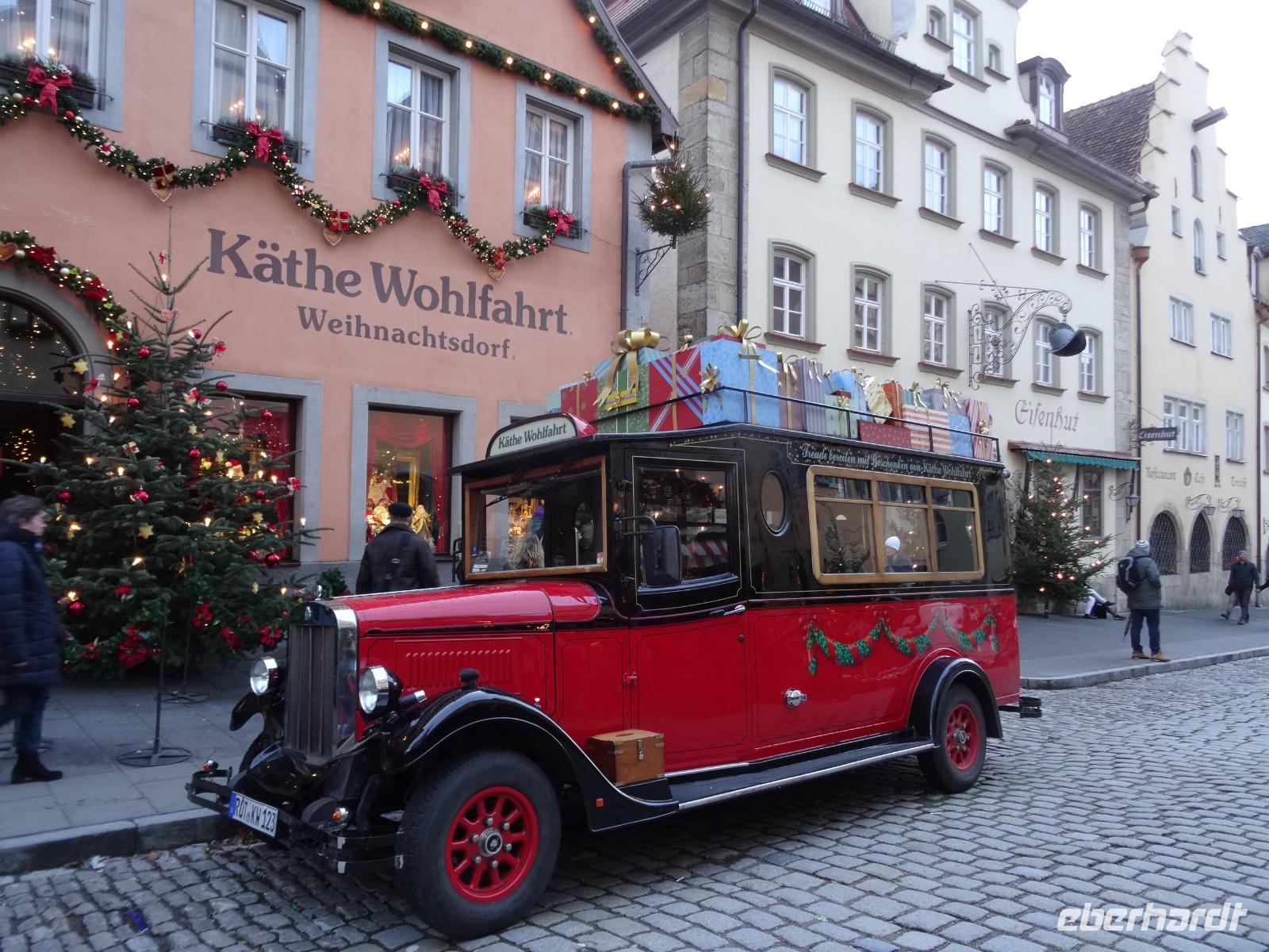 Nach dem Mittag erreichten wir Rothenburg ob der Tauber. Es wurde durch das Stiftertor in den Innenbereich der Stadtmauer spaziert. Gerade zur richtigen Zeit erreichten wir den Reiterlesemarkt am Rathaus. Musikalische Klänge unterhielten die Weihnachtsmarktbesucher. Es wurde weißer Glühwein getrunken und verschiedene Bratwürste luden zum Verzehr ein. Es war alles köstlich. Einige Reisegästen schauten auch bei Käthe Wohlfahrt ins Geschäft und ins Museum. Es war in allen Gassen und Schaufenstern die richtige Weihnachtsstimmung. Das spezielle für Rothenburg o.T - Schneebälle - viele Bäcker boten die süße Kost an - aber die Größe der Schneebälle überraschte einige.
