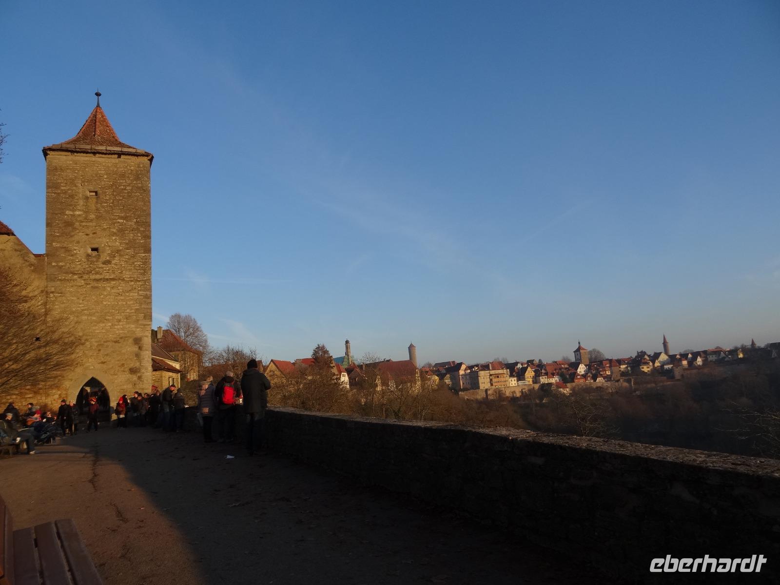 Zur Silvesterreise starteten heute weitere 26 Gäste im gelben 4* Reisebus von Felsland-Trip über Nürnberg nach Rothenburg o.T. Pünktlich am Parkplatz angekommen, führte uns der Spaziergang durch den bewehrten Mauerring der Stadtbefestigung zum Marktplatzbrunnen. Es erwarteten uns bereits zwei Gästeführer zum viel zu kurzen Rundgang. Ein blauer Himmel mit Sonne lies uns den Aufenthalt mit Geschichten, Humor, historischen Gebäuden, verwinkelten Gassen und der Stadtbefestigung kaum Zeit für eigene Erkundungen. In der St. Jakobskirche konnten wir nur einen kurzen Blick auf einmalige Kunstschätze, farbenprächtige Fenster im Ostchor bestaunen, Zeit für die Besichtigung der Altäre von Tilmann Riemenschneider waren leider nicht möglich. Wir gingen bis zum unteren Mauerbereich und hatten somit einen wunderbaren Blick auf die Wehranlagen mit Schießscharten. Eine kleine Imbissbude ermöglichte uns ganz schnell einen Heißen Glühwein oder Punsch zu verköstigen und dann war auch schon die Zeit vorüber und wir mußten bereits zum Reisebus zurück, denn es war noch ein gutes Stück an Wegstrecke bis zum Hotel Christel ins Heimbuchenthal. Pünktlich um 16.30 Uhr ging es auf die letzte Etappe des Tages, weiter auf der A7 und A3 an Würzburg vorbei in den Spessart. Im Hotel „Christel" angekommen wurden wir persönlich von Herrn Spieler begrüßt und empfingen unsere Zimmerschlüssel.