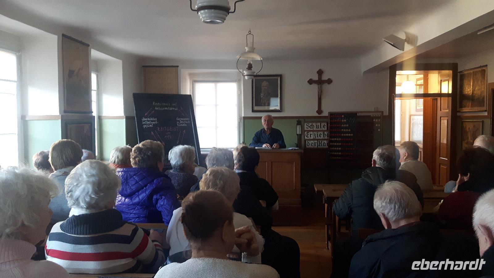 Nach unserem leckeren Frühstück war unser erstes Ziel am heutigen Tag das Schloss Erbach. Vorbei an den Städten Eschau, Klingenberg und Laudenbach kamen wir nach einer Stunde Fahrt am Schloss an. Dort erwarteten uns zwei Gästeführer, welche eine ausgiebige Führung für uns vorbereitetet hatten. Das Erbacher Schloss aus dem 18. Jahrhundert birgt hinter seinen Mauern kostbare Schätze, welche wir erforschten. Unter anderem die Waffenkammern und die Wohnräume der Familie Erbach-Erbach, ebenso wie die umfangreichen Sammlungen von kolossalen und abnormen Geweihen. Wer mochte, konnte die separate Ausstellung im Elfenbeinmuseum besichtigen und in der Stadt Erbach spazieren gehen, bevor es weiter in das nahe gelegene Städten Michelstadt ging. Nur wenige Minuten fuhren wir und machten gemeinsam einen Spaziergang bis zum Rathaus. Dieses ist besonders sehenswert, denn erbaut wurde es 1484 und ist allseits ein freistehender spätmittelalterlicher Fachwerkbau. Nach einem gelungenen Nachmittag fuhren wir zurück nach Heimbuchenthal. Am Abend gab es dann auch noch die Möglichkeit den Film „ das Wirtshaus im Spessart" zu sehen.