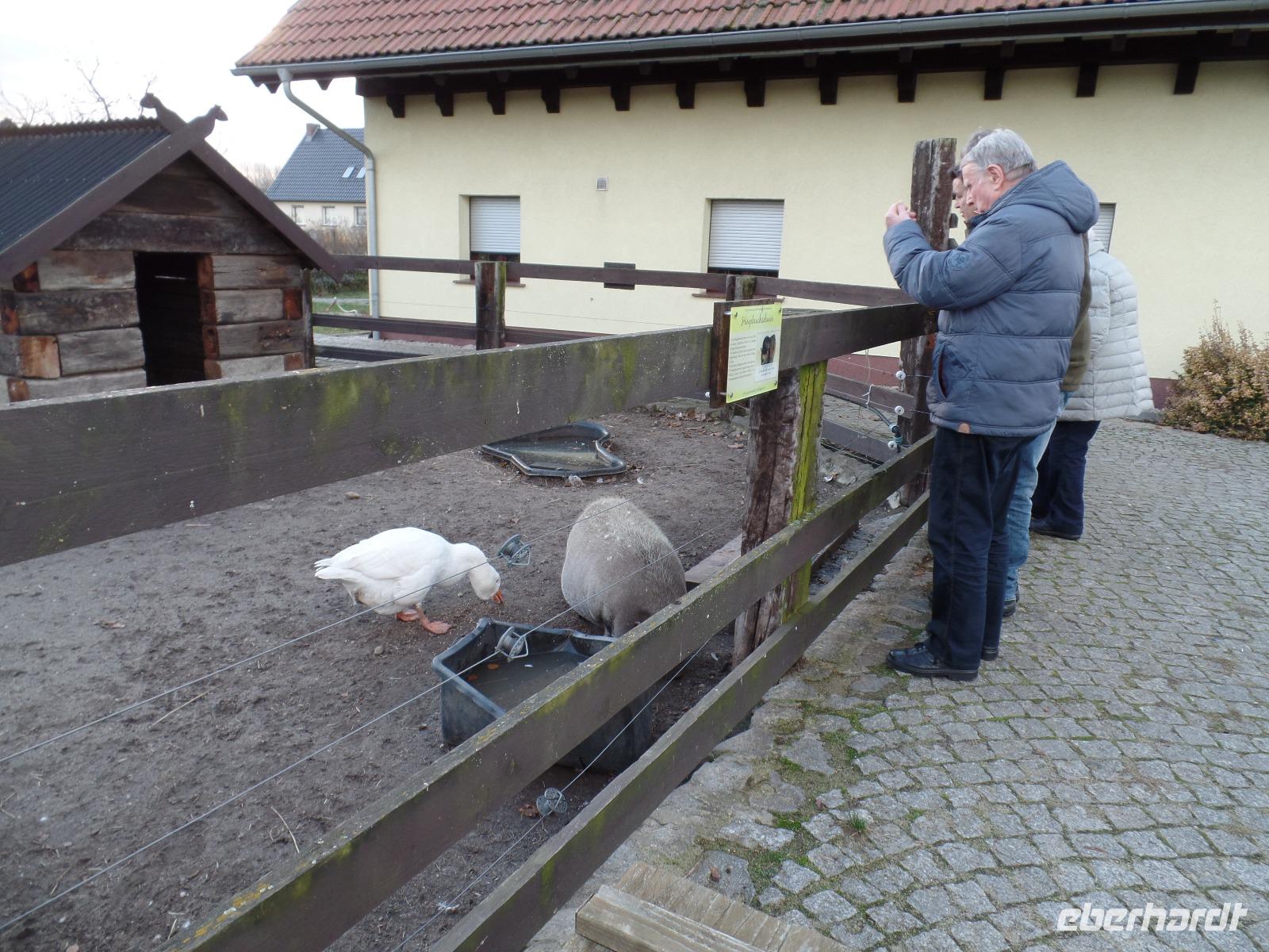 Am Morgen erwartet uns ein ebenso leckeres Frühstücksbuffet in unserem familiären Hotel. Es bleiben keine Wünsche offen und den meisten Spaß haben wir mit den mit Gesichtern verzierten Eiern. Der erste Programmpunkt ist eine Kahnfahrt vom hoteleigenen Hafen aus. Pünktlich versammeln wir uns zuerst für ein Gruppenfoto und bei strahlendem Sonnenschein, allerdings auch frostigen Minusgraden. Bei unserer Gruppenstärke sind zwei Kähne vonnöten, allerdings erscheint im Hafen nur einer. Nach einigen Telefonaten ist klar, dass sich der zweite Kahn stark verspäten wird, also startet der erste Teil unserer Gruppe auf eine einstündige Rundfahrt durch die Fließe rings um Leipe. An Bord gehen natürlich auch Tee und Glühwein, falls uns unterwegs danach dürstet. Gruppe 2, die noch auf das typische Fortbewegungsmittel des Spreewalds wartet, beginnt mit der Glühwein-Verkostung einfach schon im Hafen und nachdem der Kahn endlich doch kommt, genießen wir eine wundervolle Fahrt. Sonnenschein, reif auf den Wiesen, absolute Ruhe und eine traumhaft romantische Kulisse lassen uns den Start in den Tag genießen. Nach Rückkehr zum Hotel starten wir zu unserem straffen Tagesprogramm in Richtung Straupitz. Hier besuchen wir die einzige Mühle in Europa unter deren Dach drei Gewerke gleichzeitig Platz finden. Bei einer Führung lernen wir alles über die Sägemühle und die Kornmühle, die allerdings leider nur noch zum Mühlentag tatsächlich in Betrieb sind. Umso aktiver wird das für den Spreewald typische Leinöl hier in Straupitz noch in der Mühle gepresst. Locker und witzig bekommen wir die Arbeitsprozesse für die Herstellung der Spezialität bei vollem Produktionsbetrieb erklärt und dürfen natürlich auch ein wenig verkosten. Zeit für einen Einkauf und/oder einen leckeren Mittagssnack bleibt gerade noch, bevor wir - die halbe Gruppe laufend, die andere Hälfte per Bus - unseren nächsten Programmpunkt ansteuern. Die Schinkel-Kirche in Straupitz - ein riesiges Kirchenhaus, mindestens für eine solche Ortschaft - wird uns bei einer eigens für unsere Gruppe organisierten, sehr interessanten und emotional vorgetragenen Führung bestens erklärt. Unsere nächste Station ist Schlepzig bzw. die dort ansässige Brennerei. Bei einer Führung und Verkostung lernen wir Vieles über die Produktion, die Vielfalt der einzelnen Produkte und den Umgang mit dem Deutschen Zoll kennen. Über allem schwebt aber eine greifbare Verunsicherung der Mitarbeiter, da gerade vor 3 Tagen die komplette Brennerei an einen neuen Investor = Arbeitgeber verkauft wurde. Ob, wie und in welchem Umfang es weitegeht, scheint in den Sternen zu stehen... Nach einem Birnen- und einem Brombeerlikör geht es weiter in Richtung Lübbenau. Leider mussten wir das Tagesprogramm etwas umstellen, dies aber im Sinne der Kunden und mit einer glänzenden Alternative. In Lübbenau werden wir von freundlichen Transferunternehmen zur „Spreewaldweihnacht" im Museumsdorf Lehde gebracht, wo unser erster Weihnachtsbesuch unserer Reise möglich ist. Alle genießen das außergewöhnliche Flair und die eine oder andere Köstlichkeit der Region. Bereits im Dunkeln treten wir die Rückreise zu unserem Hotel an. Da wir heute schon ausreichend kulinarische Genüsse erleben durften, erwartet uns heute „nur" ein 2-Gänge-Menü. Jeder konnte zwischen Zander im Speckmantel oder Meerrettich-Schnitzel wählen und niemand hatte Grund zur Beschwerde. Bevor wir den Abend gemütlich ausklingen lassen, erwartet uns noch eine kulturelle Abwechslung. Bei begleitender Musik vom Akkordeon erfahren wir von der „Spreewald-Kahnfrau Sylvia" allerlei Wissenswertes über die Traditionen in Leipe, die wunderschönen Trachten und das Alltagsleben. Unser Reiseleiter René lernt die Annemarie-Polka und nach dem Ende des Programms sind alle beschwingt und genießen den letzten Abend im Spreewaldhotel Leipe.