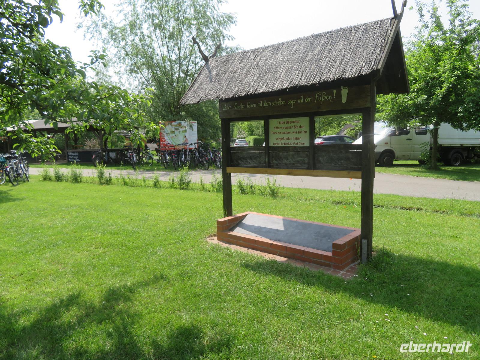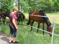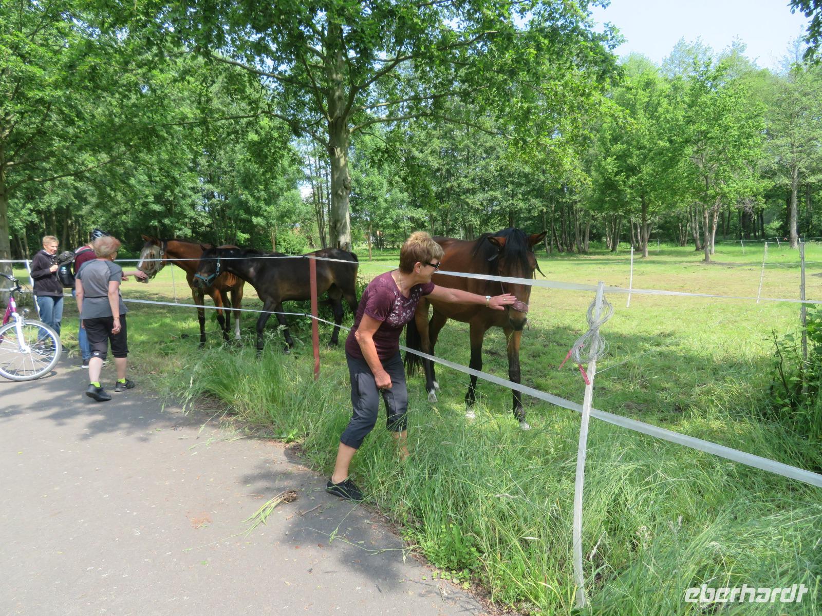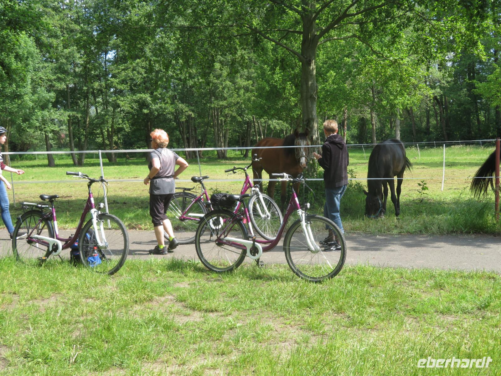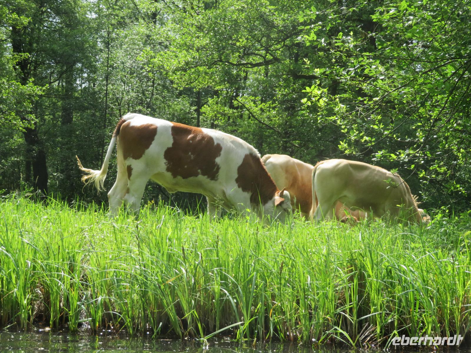 Hier unternahmen wir einen Spaziergang zum Teufelsberg, auf dem die Sagengestalt des Teufels mit seinem Ochsengespann als große Holzskulptur thront. Der Sage nach, soll er den Spreewald geschaffen haben. Am Fuße des kleinen Hügels liegt das Aueroxenreservat der Spreeaue. Hier werden die Urrinder, die vor Hunderten von Jahren diesen Landstrich besiedelt haben, in einer Freilandherde nachgezüchtet.