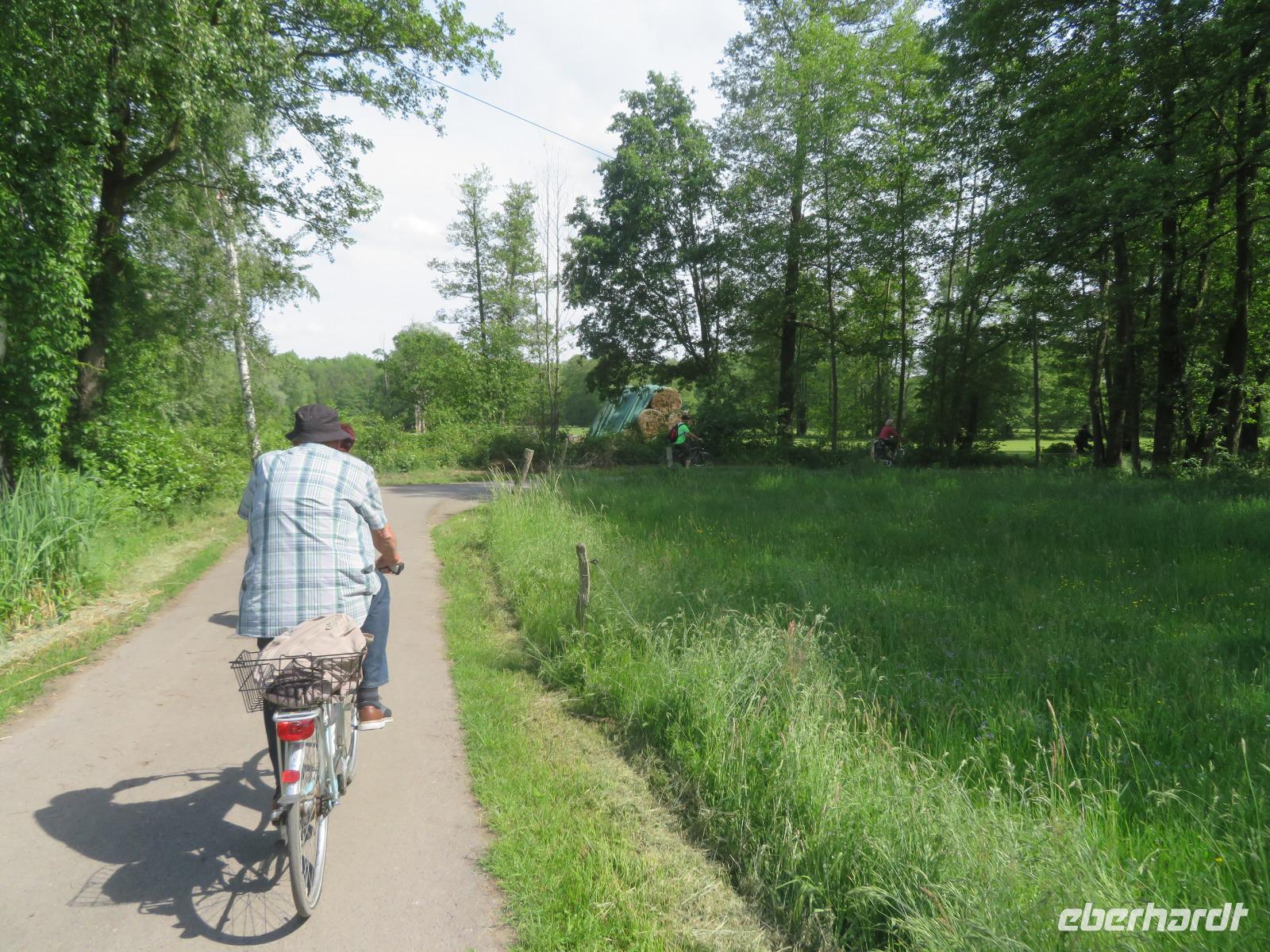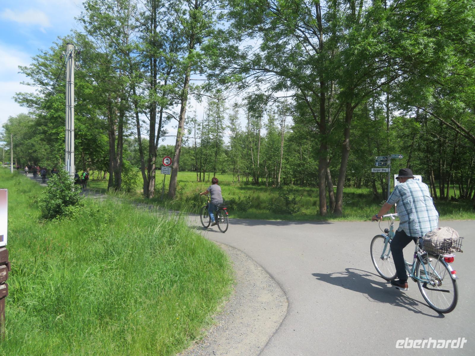Über Vetschau und Burg fuhren wir zum östlichen Rand des Oberspreewalds, zum Biotop-Verbund Spreeaue. Hier fließt die Spree noch als einarmiger Fluss, bevor sie das große Binnendelta, den Oberspreewald mit seinen hunderten Fließen und Kanälen, bildet. Hier beim Storchendorf Dissen-Striesow wurde der natürliche Flusslauf der Spree in einem aufwändigen Renaturierungsprojekt wieder zurückgestaltet. Alte Flussarme wurden geöffnet, hunderte Tiere wurden umgesiedelt, Fischtreppen gebaut, neue Pflanzen und Gräser gepflanzt.