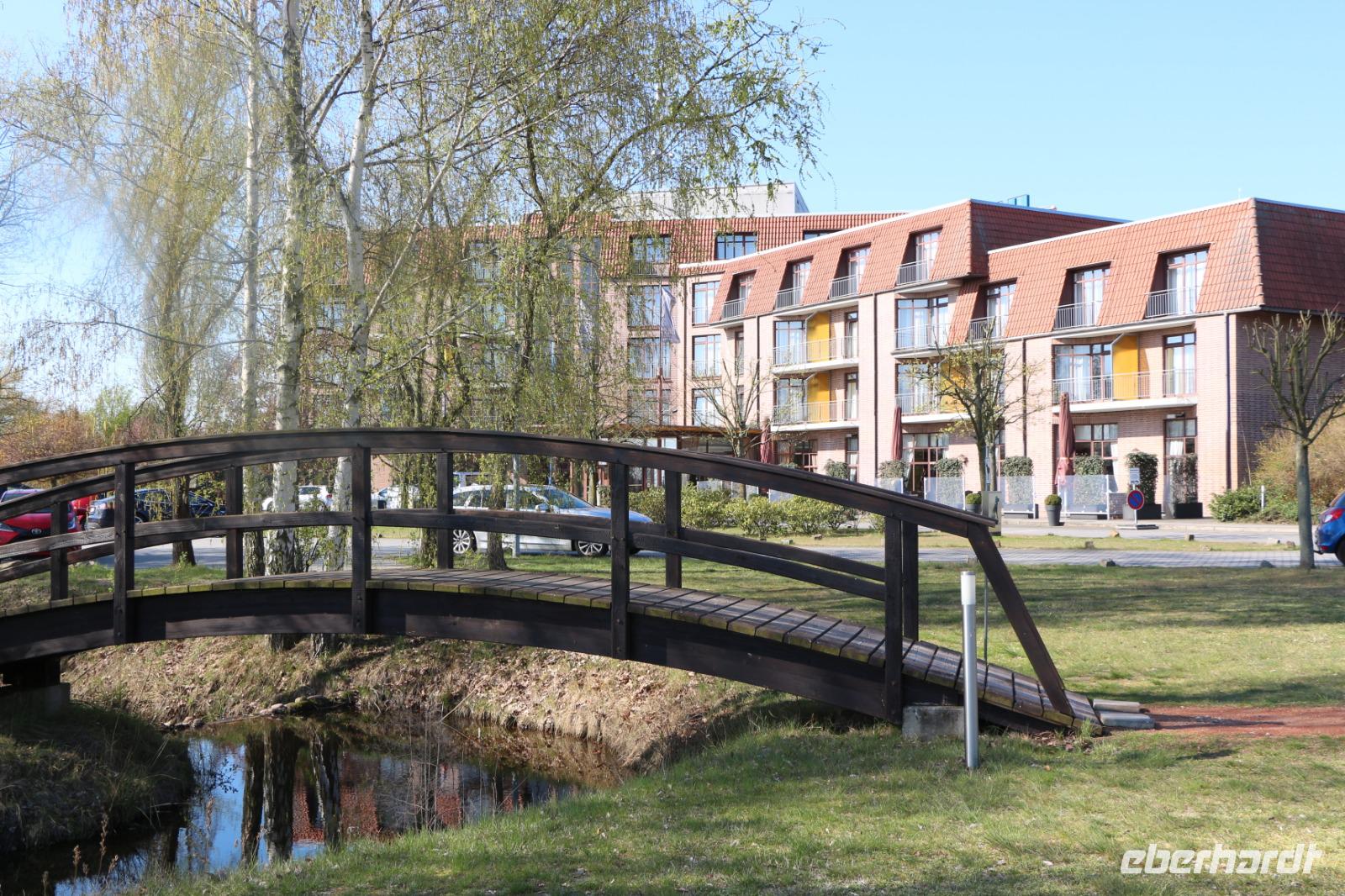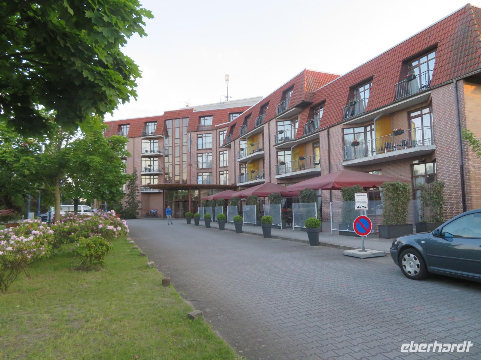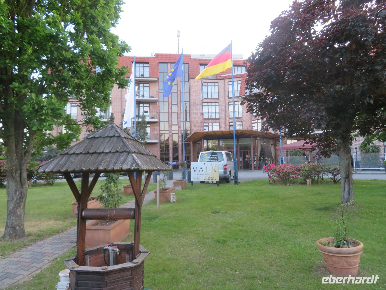 Dann fuhren wir weiter entlang des Oberspreewalds zur Kreisstadt Lübben, die die Grenze zwischen den beiden Binnendeltas der Spree, dem Oberspreewald und dem Unterspreewald, bildet. Hier stiegen wir nochmals aus dem Reisebus und unternahmen einen kleinen Spaziergang vorbei an der Spree-Lagune und der Schlossinsel zum Hafen. Bei einer Pause ließen wir uns ein Eis oder einen Kaffee schmecken und wer wollte, konnte auf die Schlossinsel oder zum Schloss Lübben spazieren. Unsere Rundfahrt endete alsbald an unserem ruhig gelegenen 4-Sterne Spreewald Parkhotel. Es gehört zur holländischen Van der Valk Hotelkette und bietet sehr geräumige Zimmer, elegante Restaurants, einen großen Garten mit Teich und gemütliche Außenterrassen. Nach dem Check In und einer Pause zum Frischmachen trafen wir uns zum gemeinsamen Abendessen, bei dem wir typische Spreewald-Gerichte vom Buffet genießen konnten. Gemütlich ließen wir den Abend bei netten Gesprächen ausklingen.