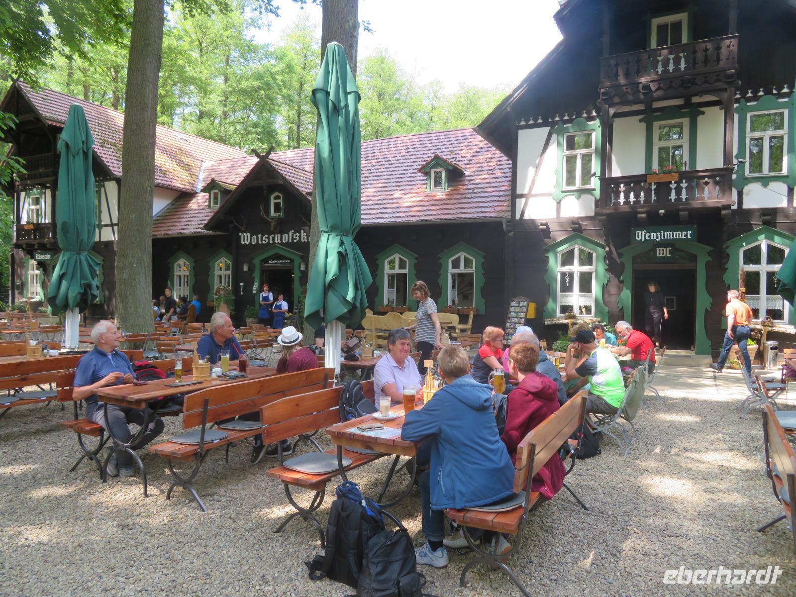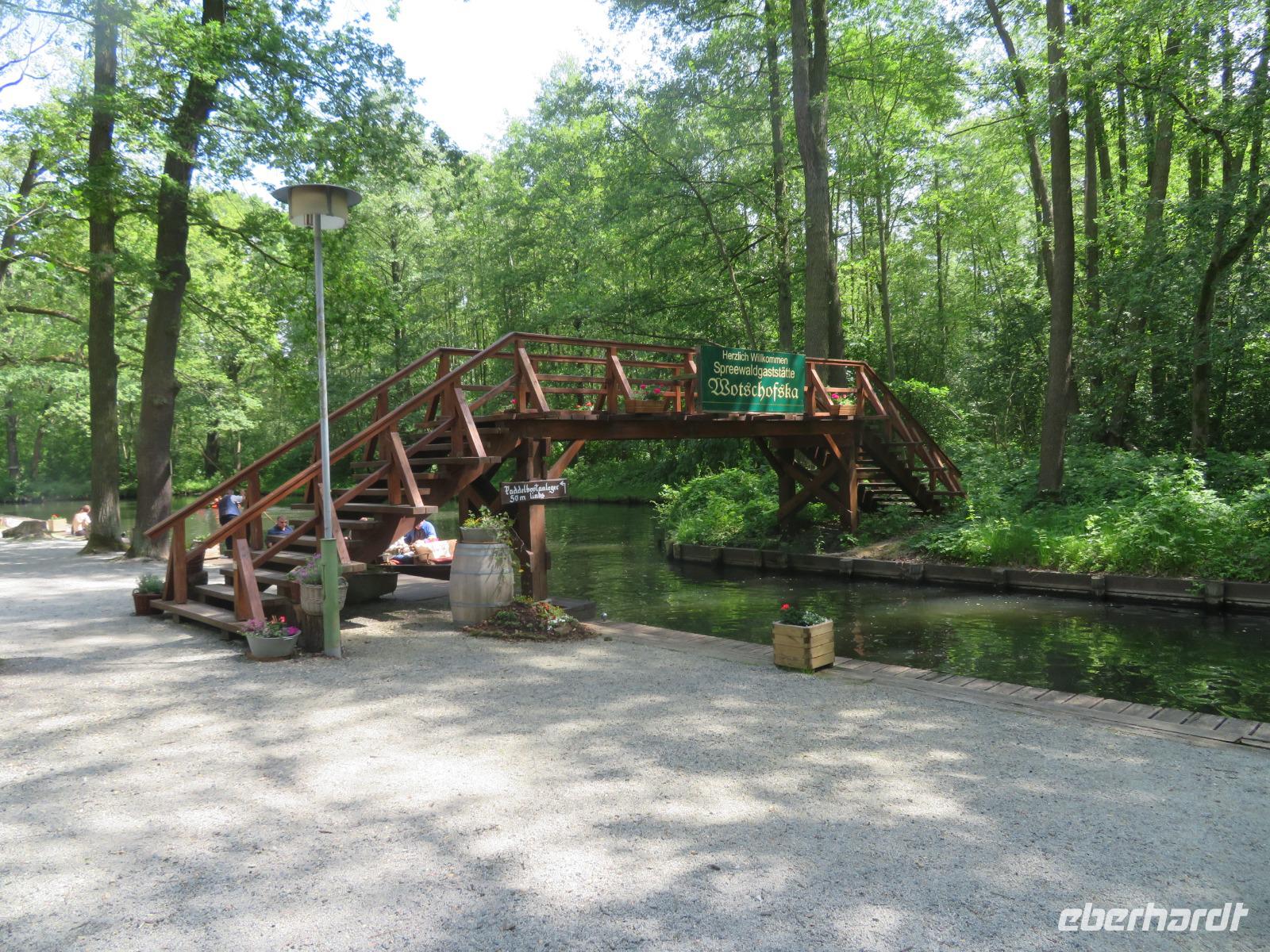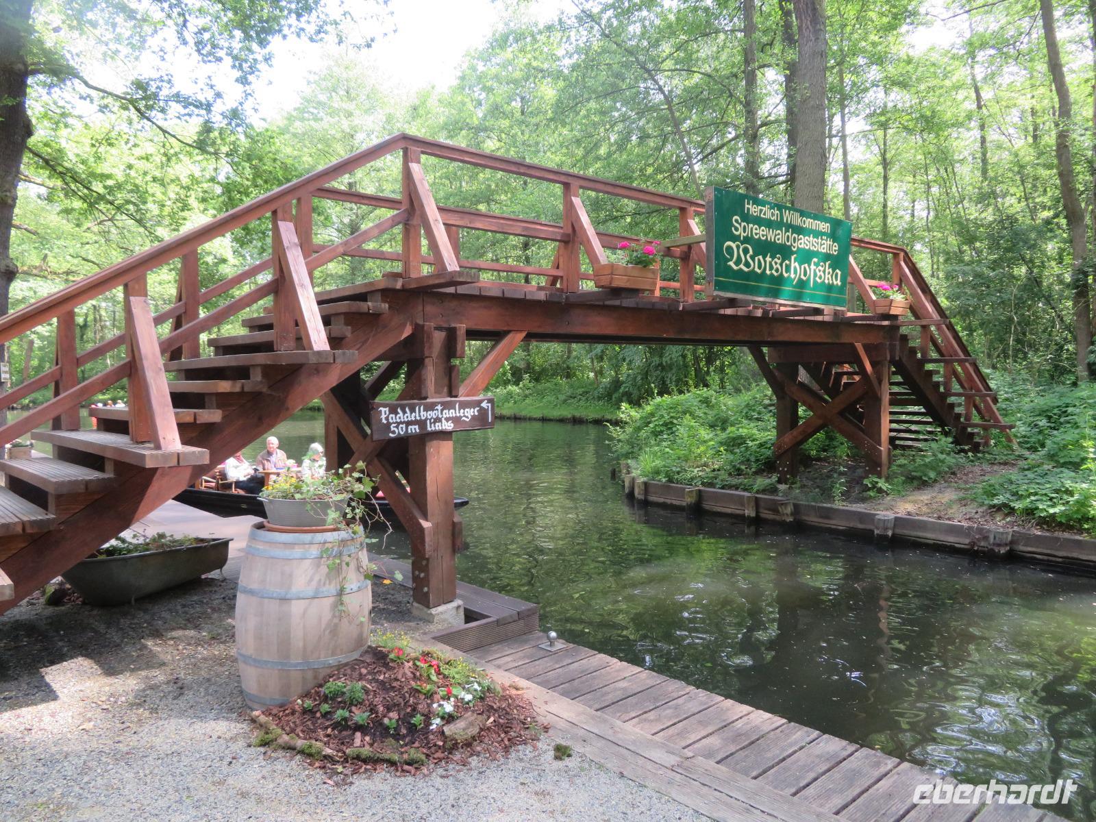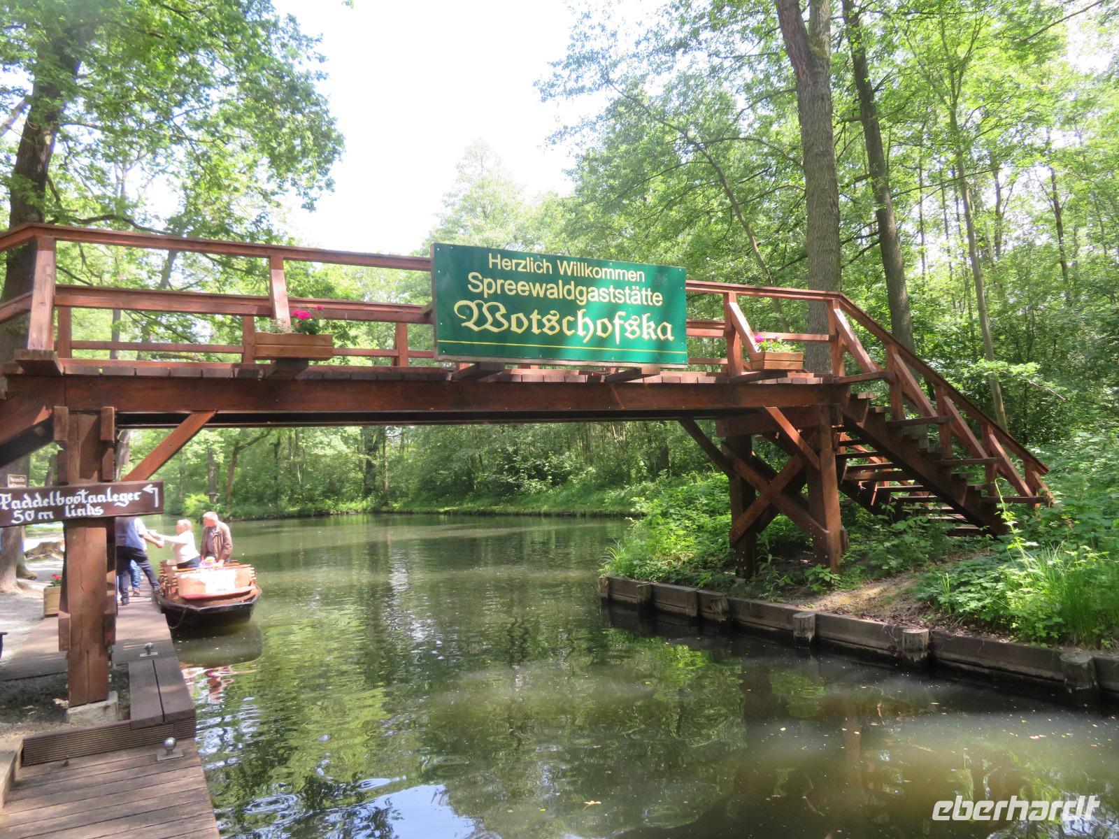 Am dritten Tag unserer Singlereise stand ein Ausflug nach Lübbenau auf dem Programm. Von örtlichen Transferfahrzeugen wurden wir nach dem Frühstück gegen 9.30 Uhr abgeholt und wir fuhren gemeinsam ins knapp 30 Kilometer entfernte Lübbenau. Am Lübbenauer Schloss, das heute wieder den Nachfahren der einstigen Grafenfamilie gehört, stiegen wir aus und spazierten gemeinsam zum Großen Spreewaldhafen von Lübbenau. Hier starten die bekannten Spreewaldkähne, die mittels einer langen Holzstange durch das Wasser gestakt werden, zu verschiedenen Rundfahrten entlang der Wasserwege rund um Lübbenau. Etwa die Hälfte unserer Reisegruppe hatte sich für die gemütliche Kahnfahrt entschieden, sodass wir sogar einen eigenen Kahn nur für unsere Gruppe buchen konnten. Die traditionelleWotschofska-Tour dauerte etwa 4,5 Stunden inklusive Mittagspause im der schon zu DDR-Zeiten berühmten Ausflugsgaststätte Wotschofska. Der Name leitet sich von sorbischen Wort für "Insel" ab, kein Wunder, denn die Gaststätte liegt auf einer Spreewald-Insel, die nur per Rad, per Boot oder zu Fuß erreichbar ist.