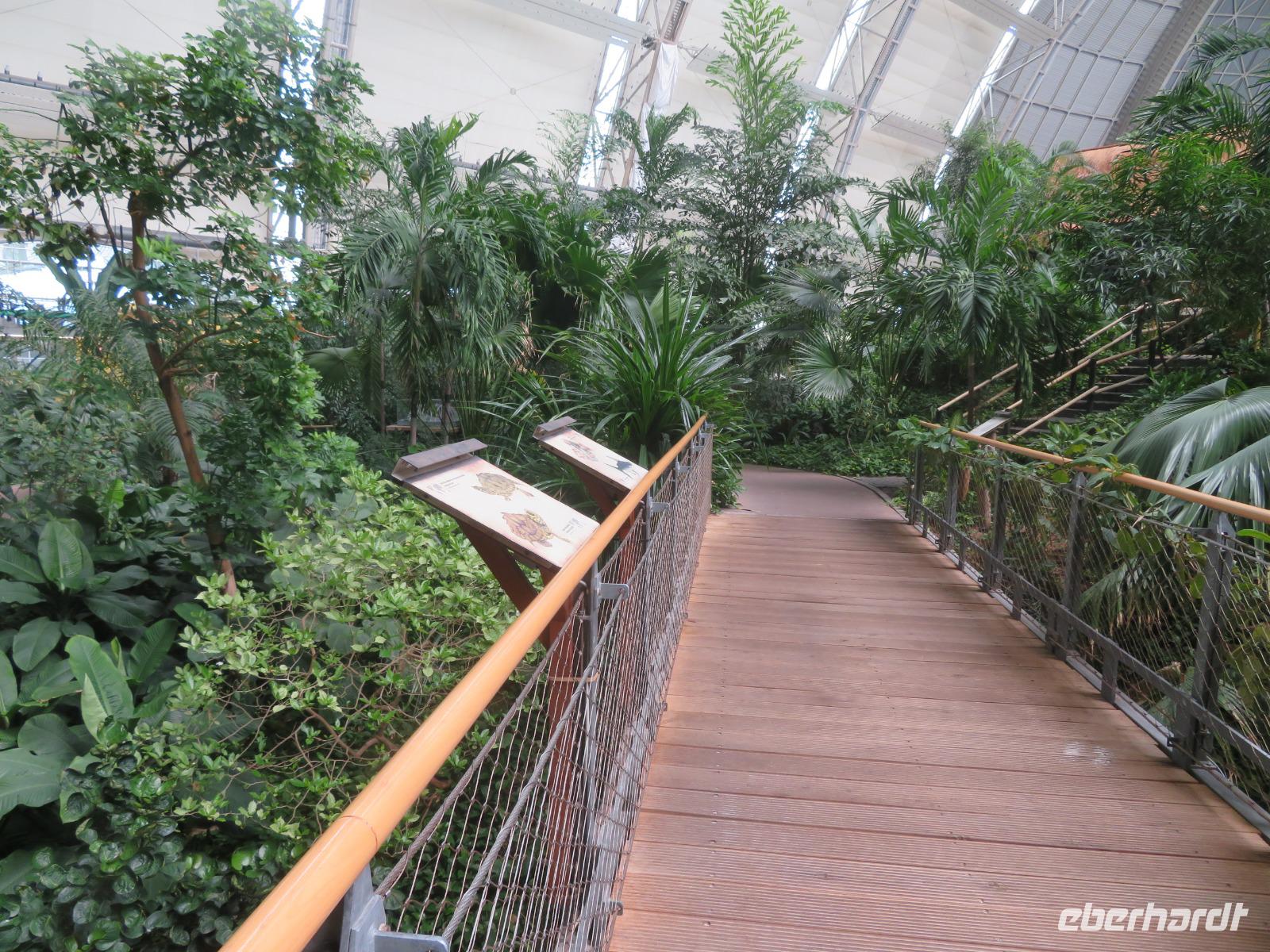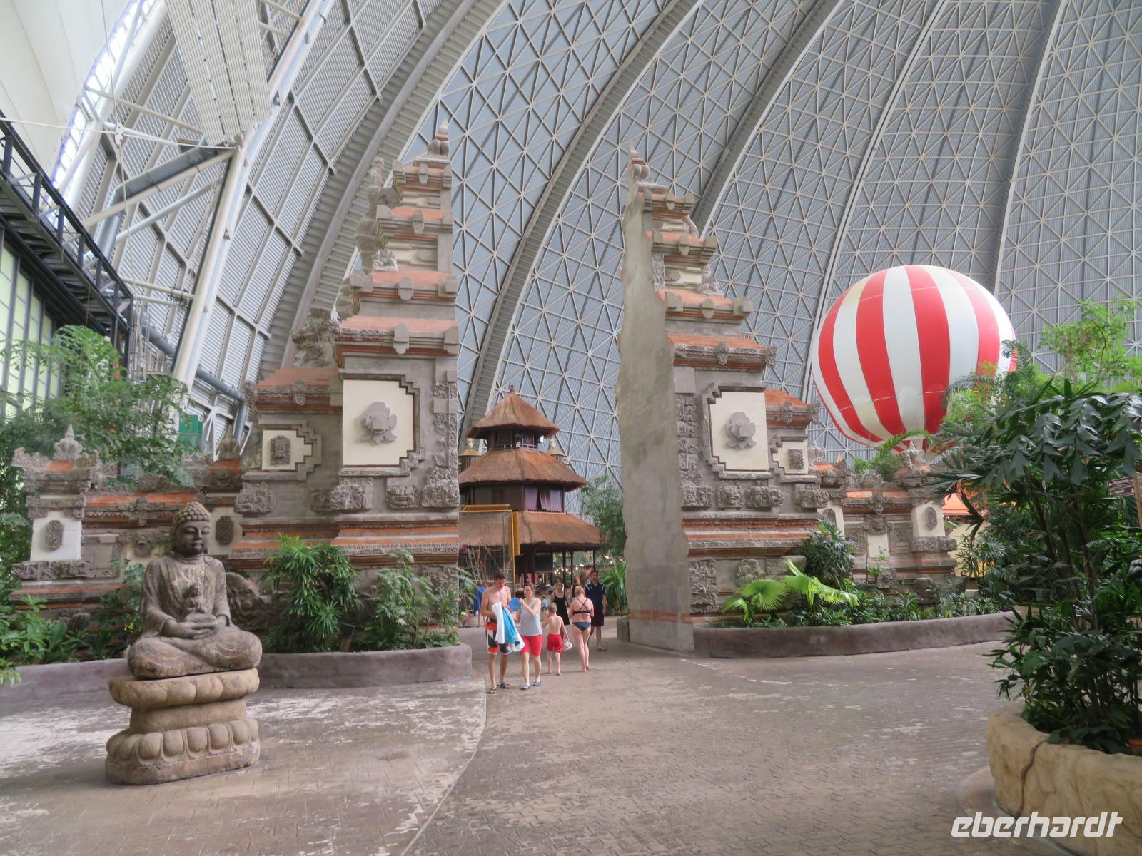 Am letzten Tag unserer Singlereise im Spreewald stand der Besuch im Bade- & Freizeitpark Tropical Islands auf dem Programm, welcher nur wenige Kilometer von unserem Hotel entfernt liegt. Nach dem Frühstück checkten wir aus den Zimmern aus und fuhren in Richtung Kraußnick, wo sich der tropische Park in der größten freitragenden Halle der Welt befindet! Hier sollten ursprünglich riesige Zeppeline gebaut werden, die als Transport-Luftschiffe für extrem große Lasten eingesetzt werden sollten. Als dieses Projekt scheiterte, wurde die Halle verkauft und zum heutigen Zweck umfunktioniert. Die Badetasche hatten wir extra gepackt mit allen Dingen, die wir im Tropenparadies benötigen: Badesachen, Strandkleid oder Shirt und Handtuch. Da wir als Reisegruppe angemeldet waren, mussten wir nicht lange am Einlass warten. Zum Umziehen ging es dann zu den abschließbaren Schränken, wie man Sie aus normalen Schwimmbädern kennt. Hier konnten wir unsere Taschen einschließen und starteten dann in Badesachen und mit Strandtuch bewaffnet in den Tropen-Kurzurlaub. Das Klima in der riesigen Halle ist angenehm tropisch mit hoher Luftfeuchte und ca. 26°C Lufttemperatur. Seit 2016 gibt es auch den großen Außenbereich Amazonia mit Wildwasserbahn, Strömungskanal, Rutsche und Massagedüsen. Wem es also drinnen zu warm wird, kann sich hier im ebenfalls angenehm beheizten Wasser den Kopf abkühlen. Wir hatten Glück, dass es nicht so voll war und wir an verschiedenen Plätzen Strandliegen nutzen konnten. Zum Mittagessen trafen wir uns am Bali-Tor und jeder konnte sich in den zahlreichen Selbstbedienungsrestaurants etwas aussuchen. Das Angebot reichte von Pasta und Pizza, Salatbar, Currywurst, Burger & Pommes, Kaffee und Kuchen bis hin zu asiatischen Restaurants. Hier wurde wirklich jeder nach seinem Geschmack fündig. Bezahlt wurde übrigens überall durch Buchung auf den kleinen Chip, den man ums Handgelenk trug und der gleichzeitig der eigene Schrankschlüssel war. Beim Verlassen der Halle konnte man so alle Speisen und Getränke insgesamt bezahlen, auf Wunsch auch bargeldlos mit Karte. Am späten Nachmittag traten wir entspannt die Rückreise nach Hause an.