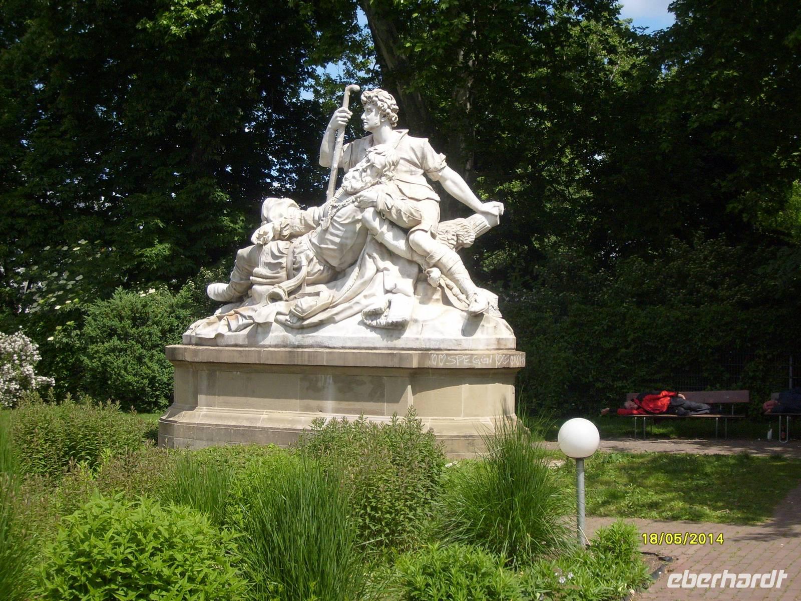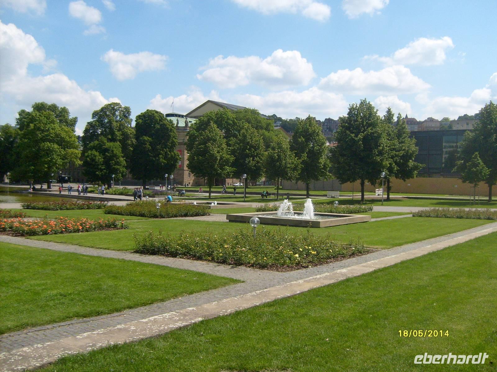 Über den Schillerplatz erreichten wir den Schlossplatz, den größten Platz Stuttgarts und Mittelpunkt der Kulturstadt. Hier erhebt sich die Jubiläumssäule mit der Figur der Göttin Concordia. Doch auch das Neue Schloss mit dem Ehrenhof, das Kunstgebäude sowie der Königsbau tragen entscheidend zum Erscheinungsbild des Platzes bei. Unser Rundgang führte uns noch durch den Schlossgarten, die grüne Lunge der Stadt.
