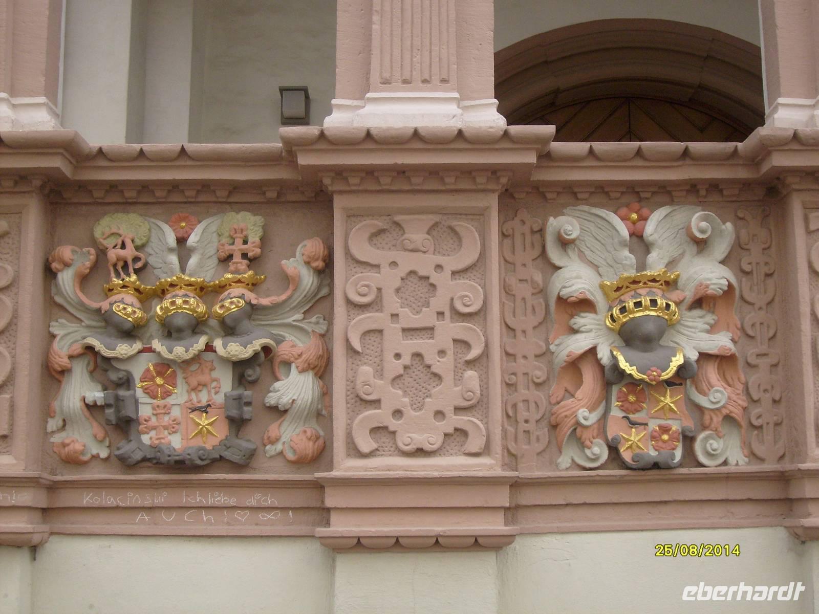 Bei einem Rundgang, im zugänglichen Teil des Schloßes, erfuhren wir alles über die lange Geschichte des Fürstenstammes, dessen Wappen eine Rose ist.