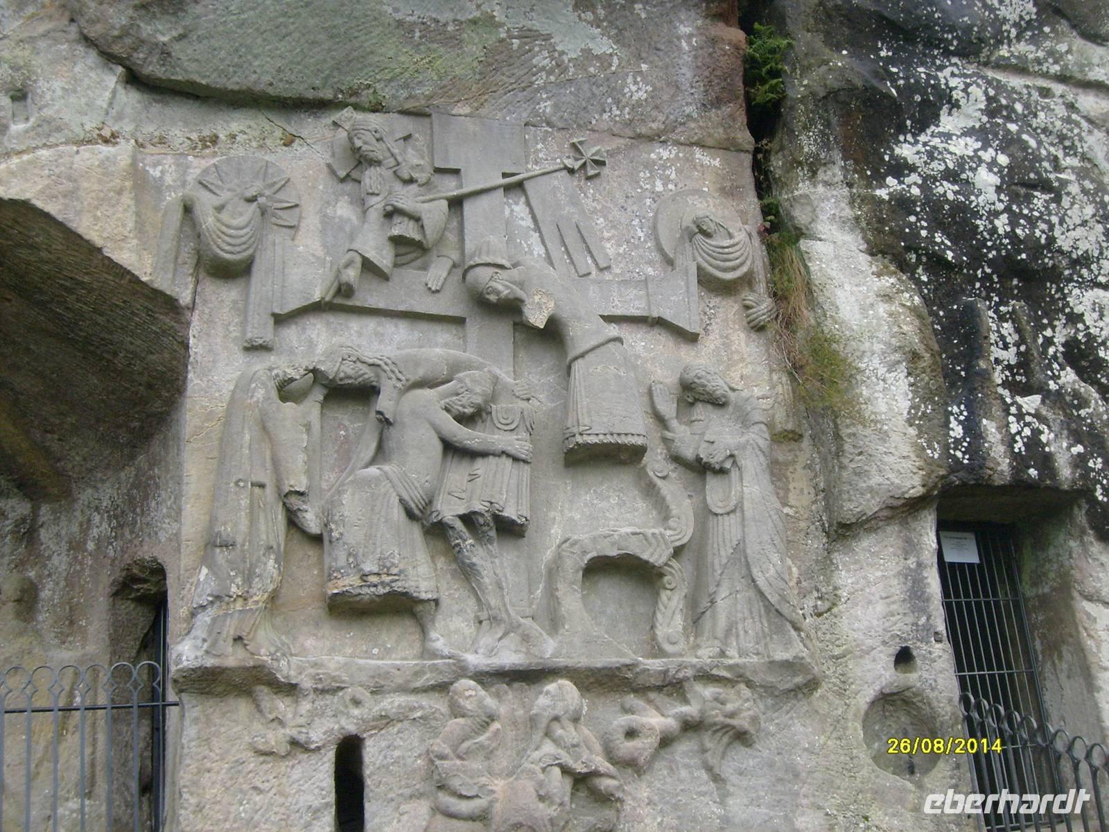Ein schönes Fotomotiv ist auch das Kreuzabnahmerelief. Mittelalterliche Steinmetze schlugen dies in die Felsen.