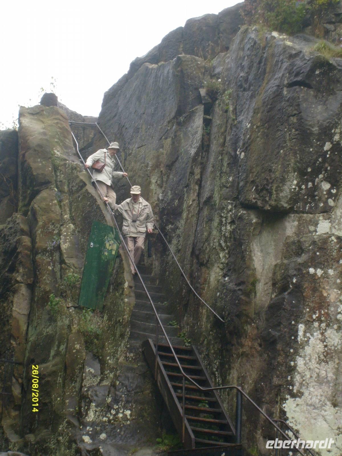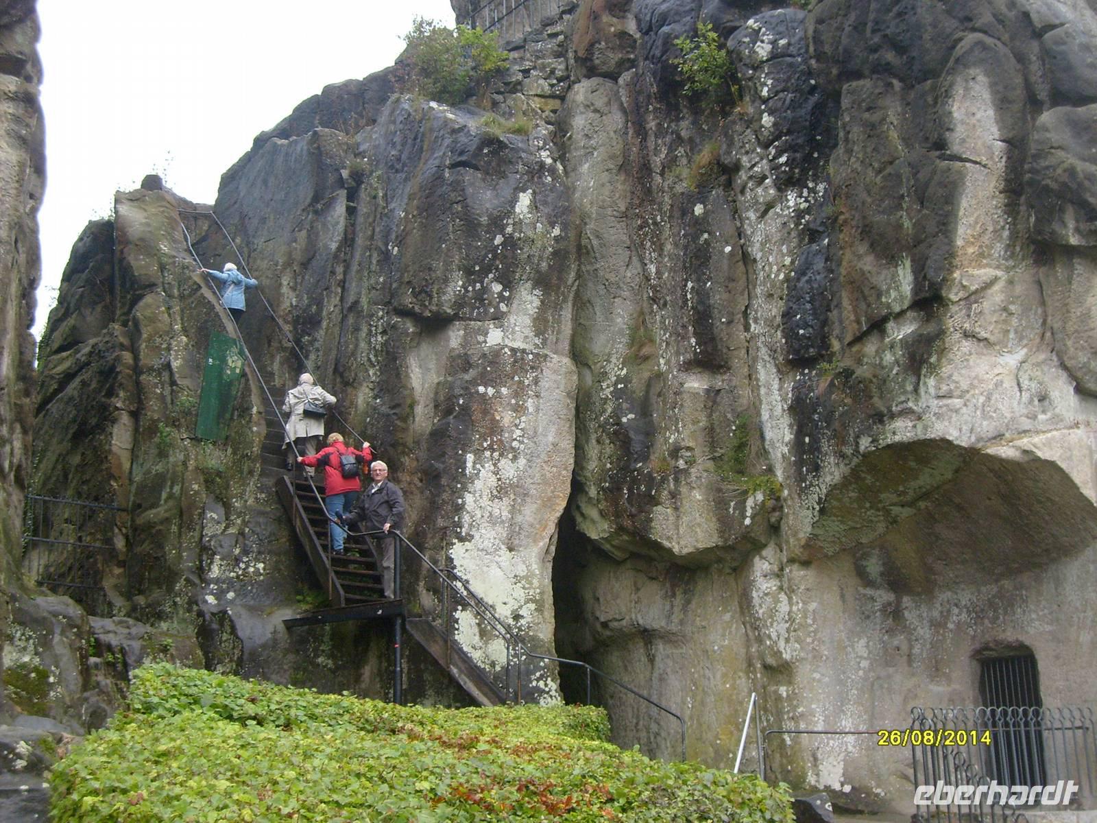 Die Felsen können über zwei in den Stein gearbeitete Treppenaufgänge erklommen werden. Ein Aufstieg, der sich lohnt! Denn aus ca. 40 m Höhe bietet sich, bei schönem Wetter, ein beeindruckender Ausblick in die abwechslungsreiche Landschaft des Teutoburger Waldes.
