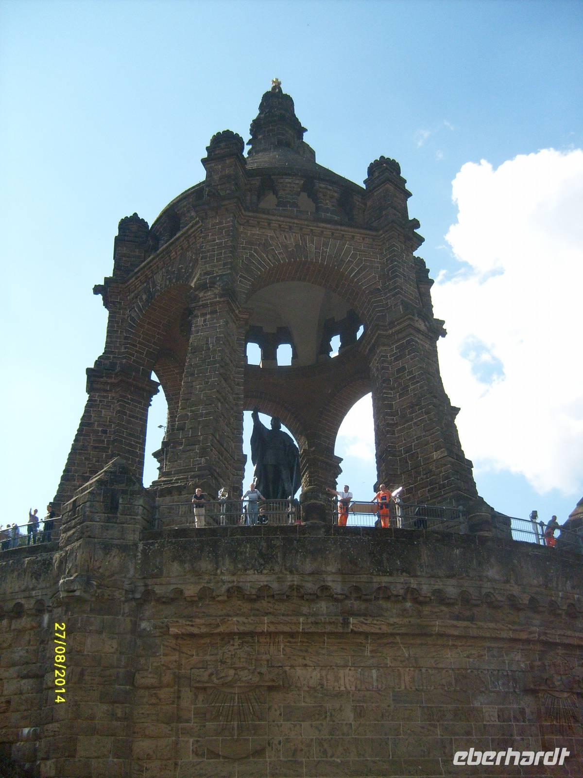1896 erbaut, zeigt das Standbild den Kaiser barhäuptig, die linke Hand auf den Palasch gestützt, die rechte Hand erhoben - das vor ihm liegende Weserbergland segnend.