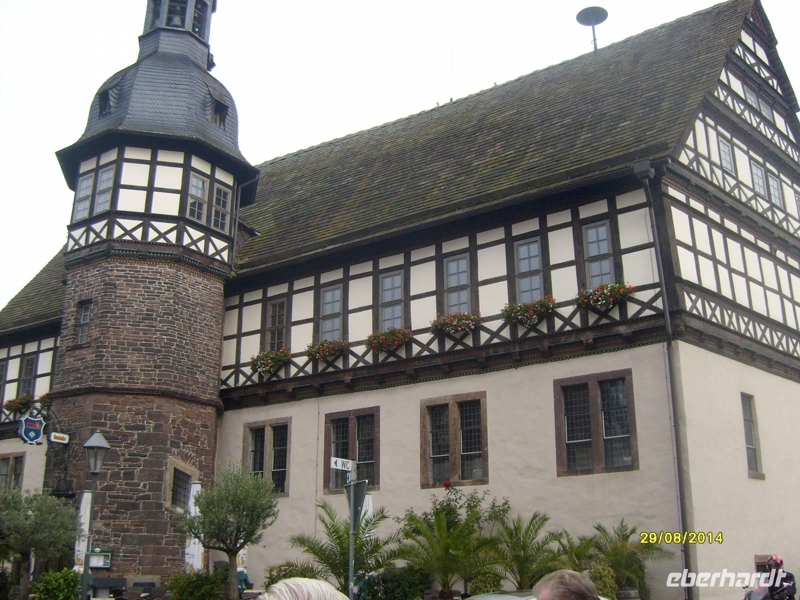 Sehenswert ist auch das Rathaus, eine Mischung aus gotischem Unterbau und Fachwerkgeschoß.