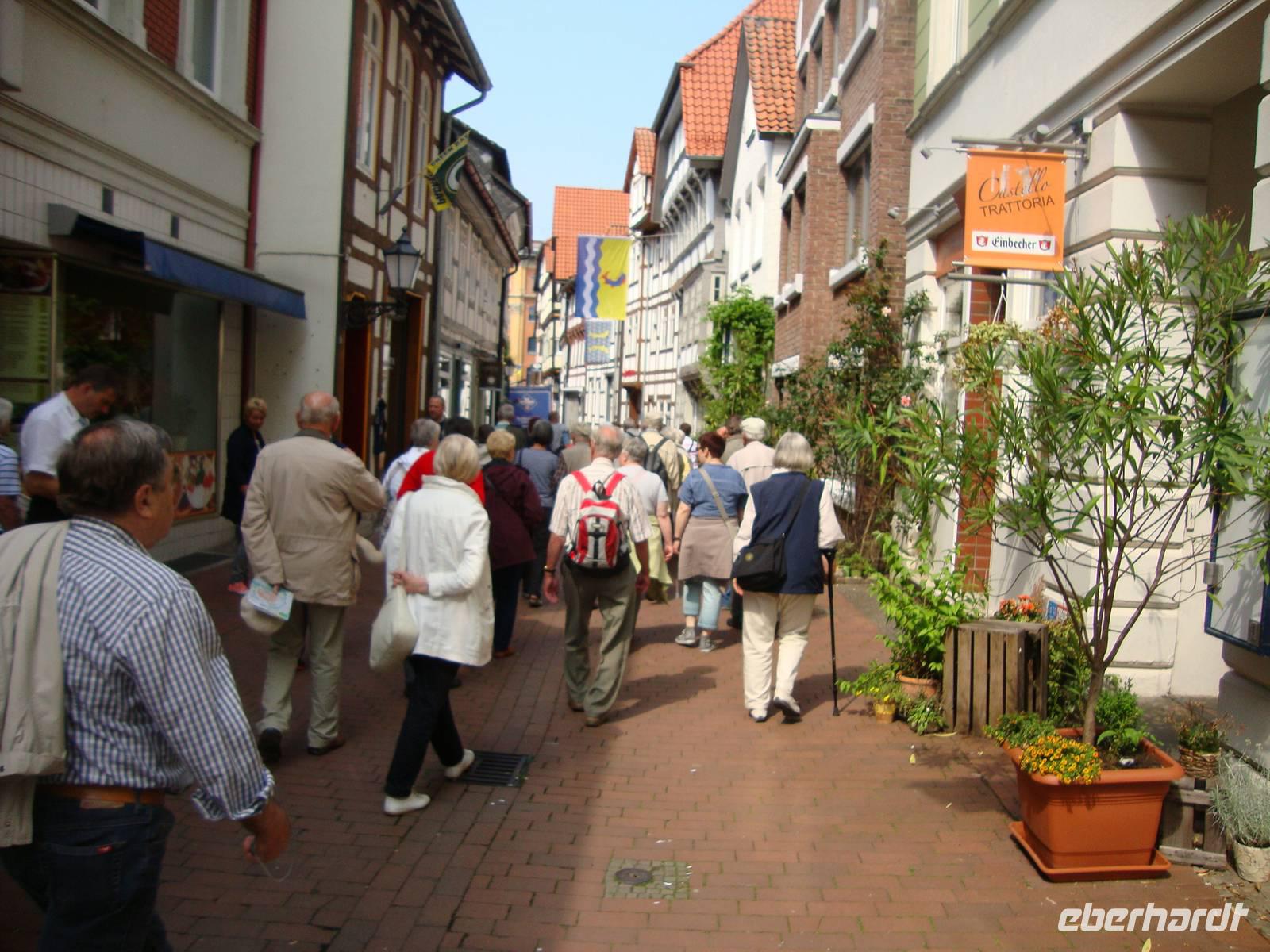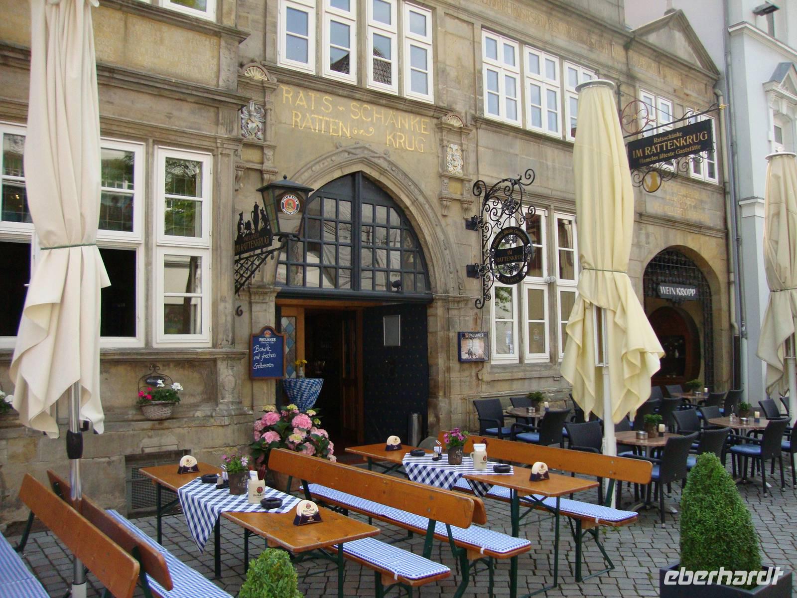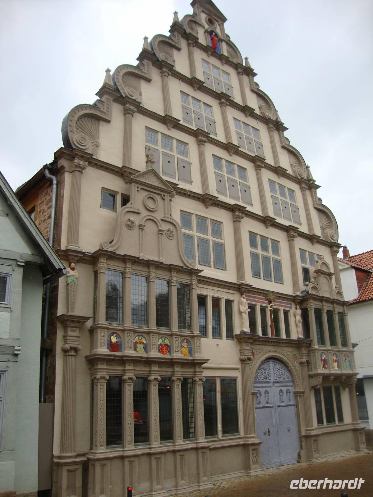 Hameln ist durch die rattenfängersage berühmt geworden. Doch auch die mittelalterlichen Fachwerkhäuser und die Gebäude im Stil der Weserrenaissance trugen wesentlich zum hohen Bekanntheitsgrad der Stadt bei. Mit unserer netten Gästeführerin, Frau Rodenberg, nahmen wir bei unserem Rundgang die bekanntesten Bauwerke in Augenschein und überall stößt man auf Spuren der berühmten Gestalt. Im Westgiebel des Hochzeitshauses läutet täglich ein Glockenspiel, welches auf das Rattenfängerjahr 1284 hinweist. Zudem wird im Sommer das Musical "Rats" aufgeführt. Nachdem wir unseren Besuch in Hameln, der Rattenfängerstadt, beendet hatten fuhren wir nach Bückeburg, um eine der frühesten barocken Gesamtanlagen Deutschlands zu besuchen. Sitz des Fürstenhauses ist seit Mitte des 16.Jh. ein Weserrenaissance Schloß. Die Schloßkapelle ist eine opulente Inszenierung im mittelalterlichen Gemäuer, insgesamt ist das Schloß die prachtvolle Residenz der Schaumburger Grafen. Für den Besuch des 1.Tag, Montag, 22.06.15 LemgoMarstallmuseum und der Hofreitschule blieb danach nicht mehr soviel Zeit. Man kann aber an den Vorführungen der Pferdedressur teilnehmen, aber dazu ist eine vorherige Anmeldung erforderlich. So klang auch der vorletzte Tag unserer Reise mit schönen Erlebnissen aus. Am Abend konnten wir im Hotel "Zur Burg Sternberg" letzmals die Köstlichkeiten, welche von der Küche zubereitet waren, genießen.