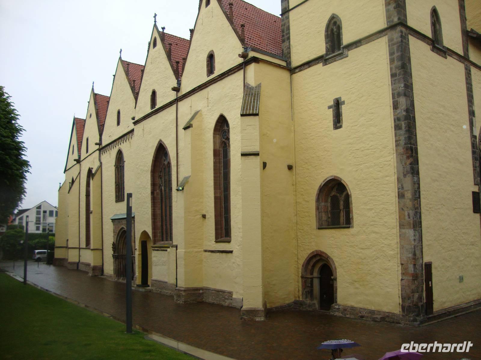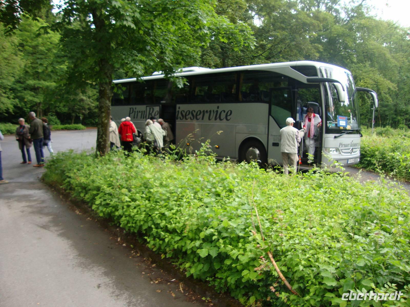 Unser moderner Reisebus vom "Pirnaer Reiseservice" mit Chauffeur Jörg Hoffmann, stand pünktlich bereit und die ersten erwartungsvollen Gäste stiegen am Flughafen Dresden ein. Nach der Fahrt über Chemnitz, weiter auf der A4 war unsere Reisegruppe in Jena komplett. 29 Personen und zwei Gäste mit Eigenanreise nahmen dann am Stadtrundgang in Lemgo, leider bei Regen, teil. Schön ist ein Spaziergang durch die Altstadt: Stein-und Fachwerkhäuser säumen die Mittelstraße; in der Hamelner Straße zieren fantastische Schnitzereien das Junkerhaus. Im 16.Jh. begab man sich unerbittlich auf Hexenjagd. Davon zeugt das Museum im Hexenbürgermeisterhaus. Herr Rossmann begleitete uns, aber leider sind montags alle Kirchen in der Stadt geschlossen. Während der Fahrt ins schöne Extertal hörte es auf zu regnen. Wir wurden herzlich im Hotel "Zur Burg Sternberg" empfangen und nachdem alle Gäste unserer Reisegruppe ihre Zimmer bezogen hatten, konnten wir in unserem Speiseraum das erste Mal von dem oppulenten und wirklich erstklassigem Büffet die Köstlichkeiten genießen. Das war auch an allen anderen Tagen so.