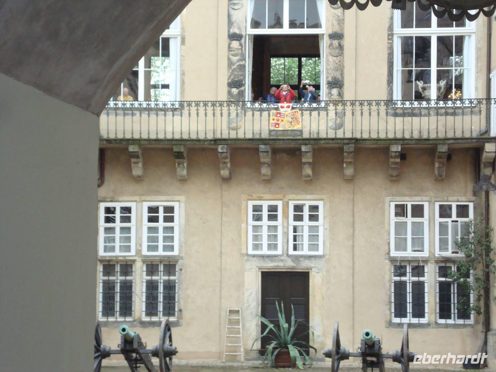 "Lippe - Detmold, eine wunderschöne Stadt..." besingt der Volksmund die ehemalige Residenz von Grafschaft (1528-1879) und Fürstentum Lippe (1789 - 1918), deren Wahrzeichen die Rose ist. Bei einem Stadtbummel erlebten wir das geschäftige Markttreiben und sahen viele interessante Bauwerke, wie das klassizistische Rathaus. Am Nachmittag unternahmen wir eine Führung im fürstlichen Residenzschloss. Der Weserrenaissancebau aus dem 16.Jh. präsentiert neben Jagdwaffen und Porzellansammlungen barocke Gobelins, die um 1670 in Brüssel gewebt wurden und Szenen aus dem Leben Alexander des Großen (365 - 323 v.Chr.) zeigen. Bewohnt wird ein Teil des Schlosses von Dr. Armin zu Lippe mit seiner Gattin.