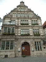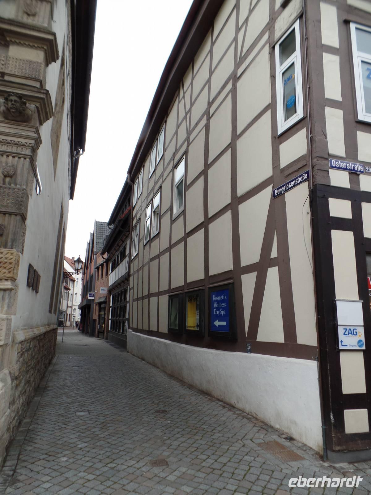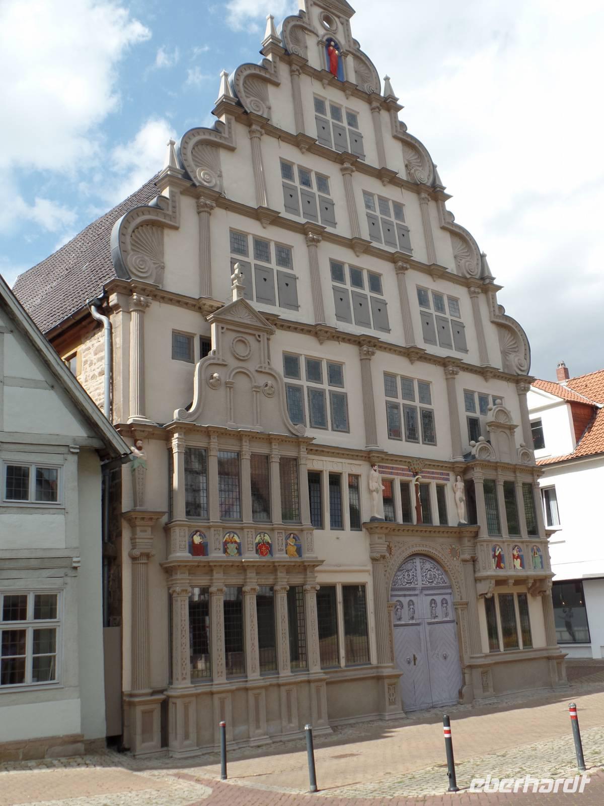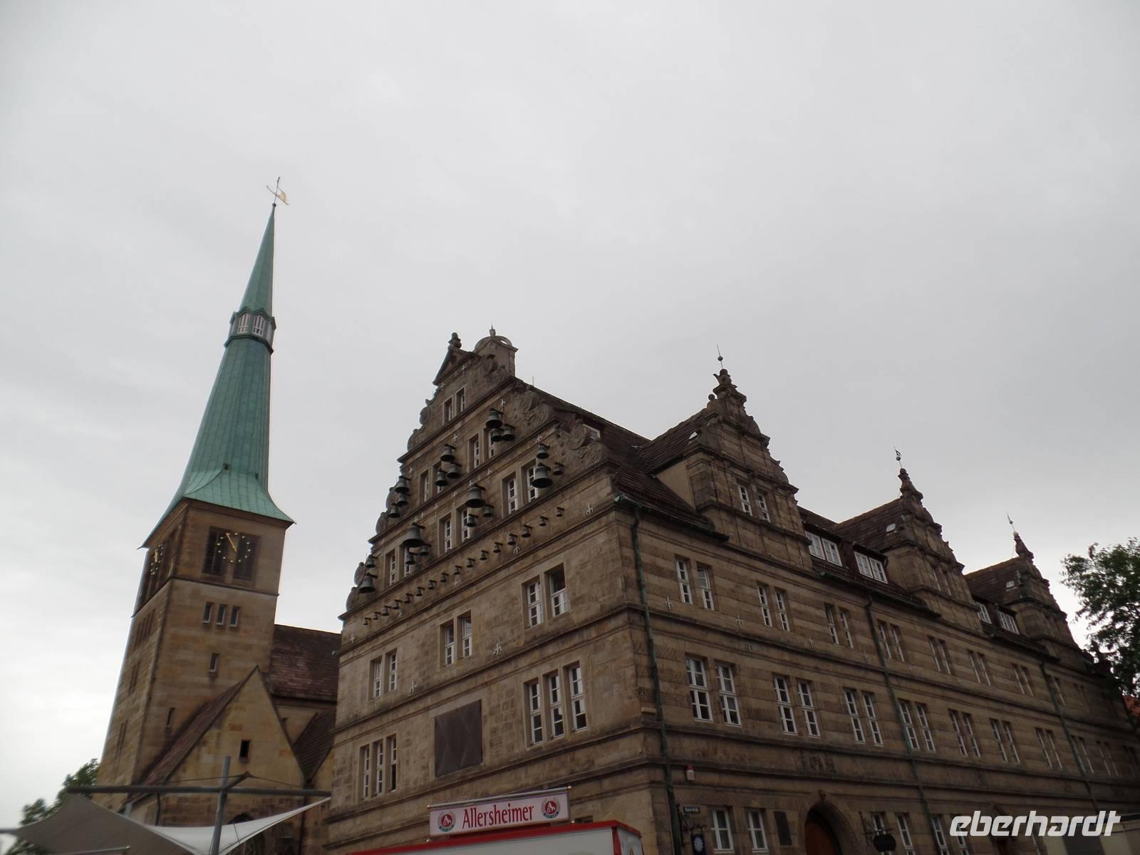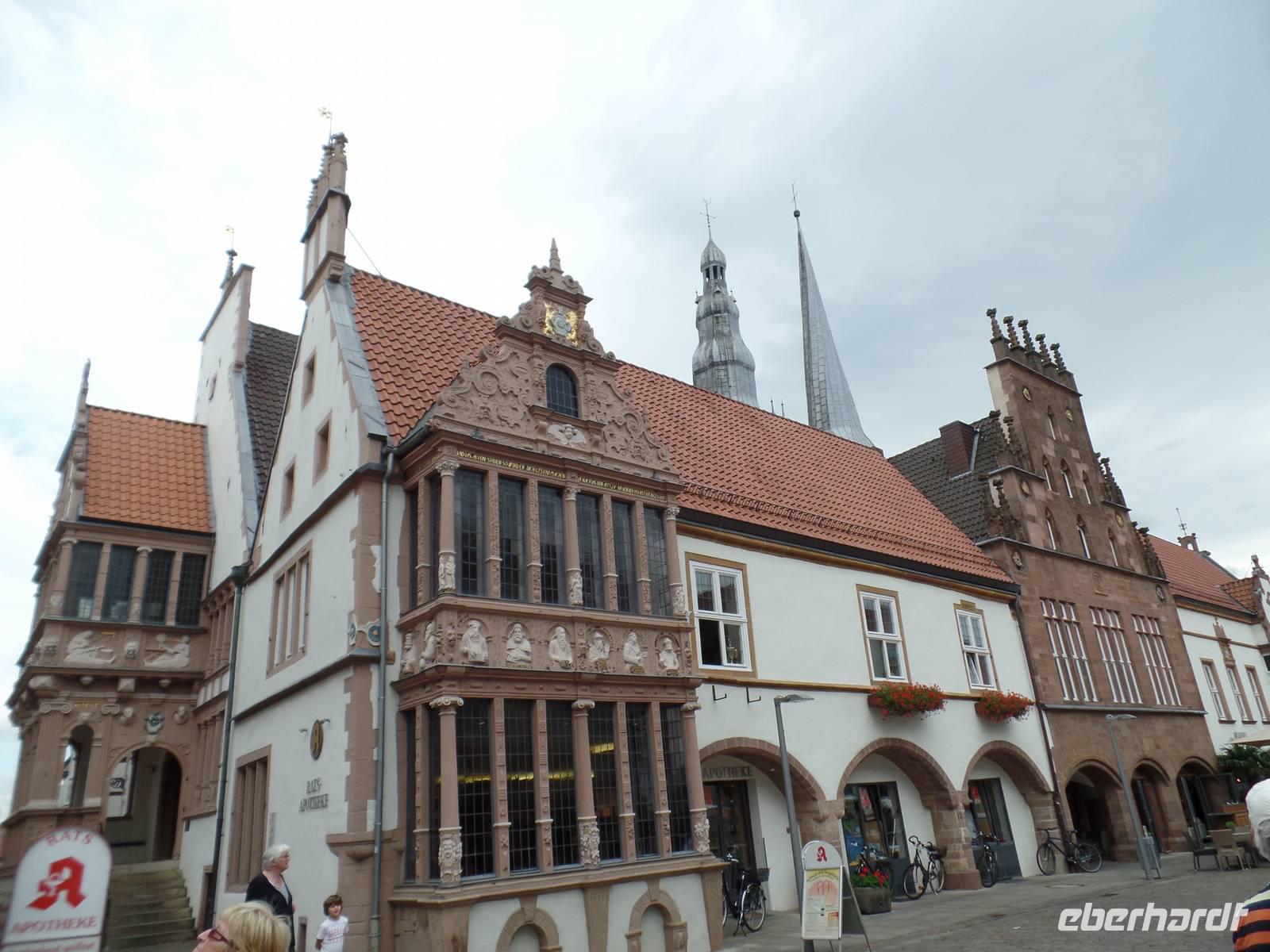 Eine der Attraktionen ist das Rattenfängerhaus. Wir gehen entlang der Osterstraße über den Pferdemarkt zum Markt mit der Marktkirche St. Nicolai oder auch dem Hochzeitshaus. Es ist Hamelns schönstes und größtes Bauwerk im Stil der Weserrenaissance.