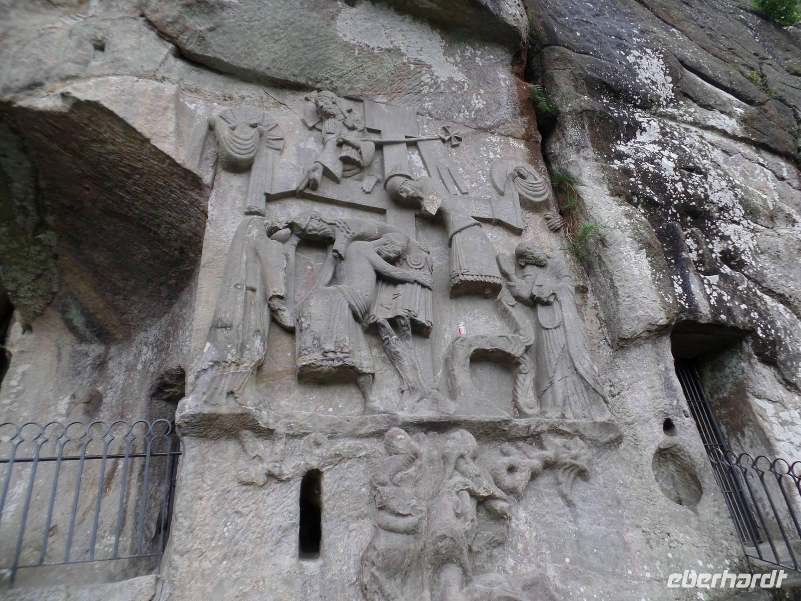 Ein schönes Fotomotiv ist auch das Kreuzabnahmerelief. Mittelalterliche Steinmetze schlugen dies in die Felsen.
