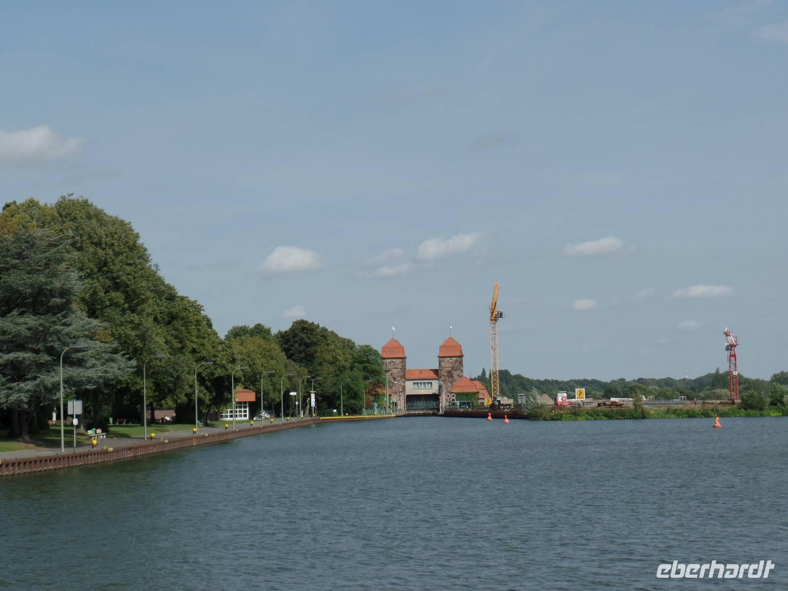 Hier kreuzen sich der Mittellandkanal und die Weser in einem Bauwerk. Seit über 100 Jahren besteht dieses Bauwerk, und gilt als technische Attraktion in Minden.