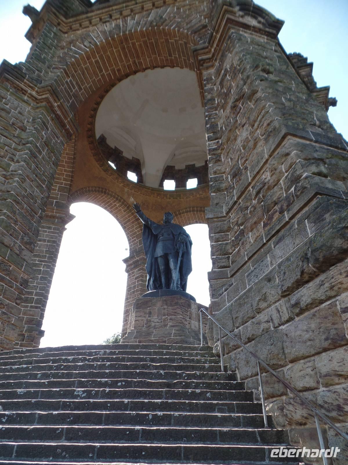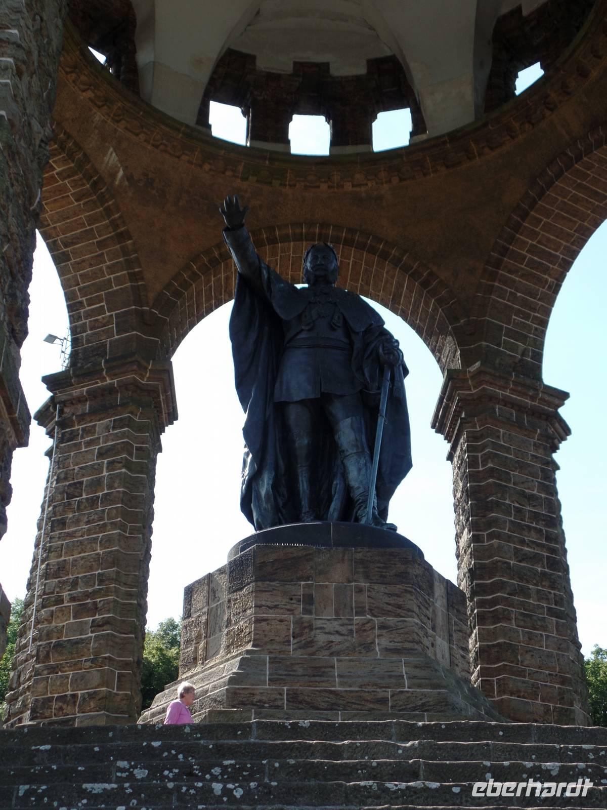 Am Nachmittag führte uns die Fahrt nach Porta Westfalica auf dem Wittekindsberg mit dem legendären Kaiser-Wilhelm-Denkmal. 1896 erbaut, zeigt das Standbild den Kaiser barhäuptig, die linke Hand auf den Palasch gestützt, die rechte Hand erhoben - das vor ihm liegende Weserbergland segnend.