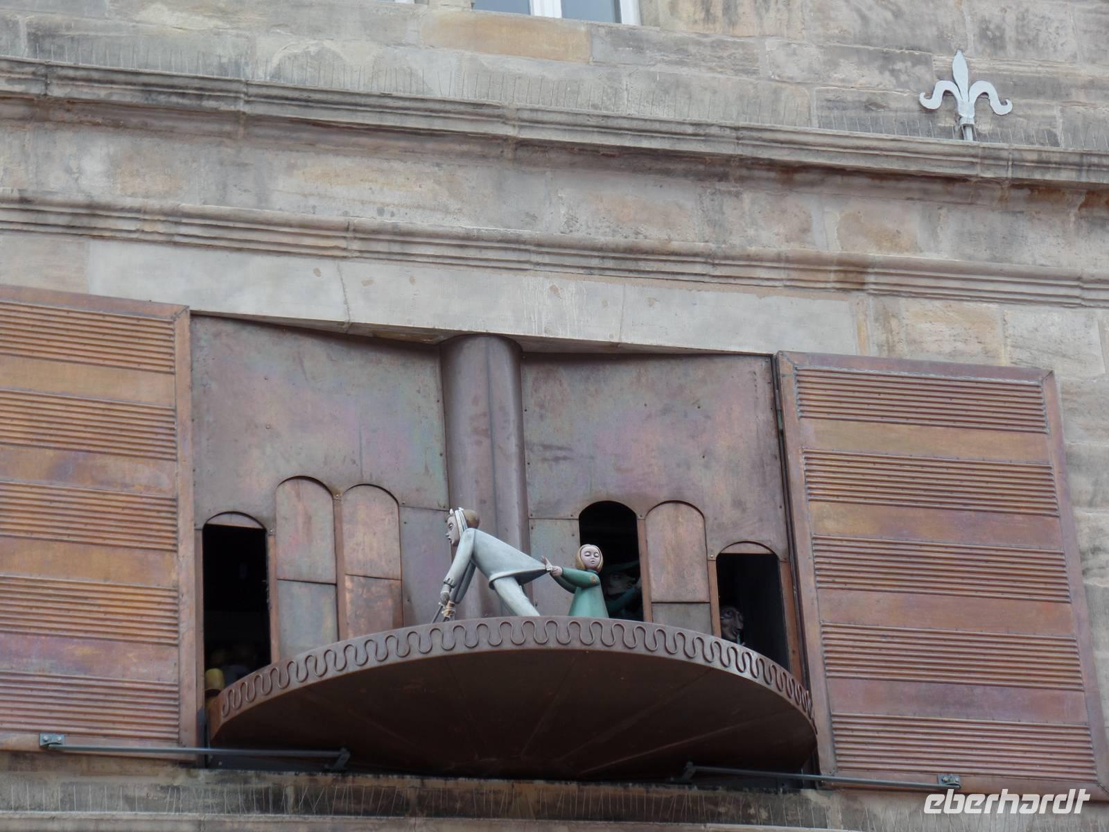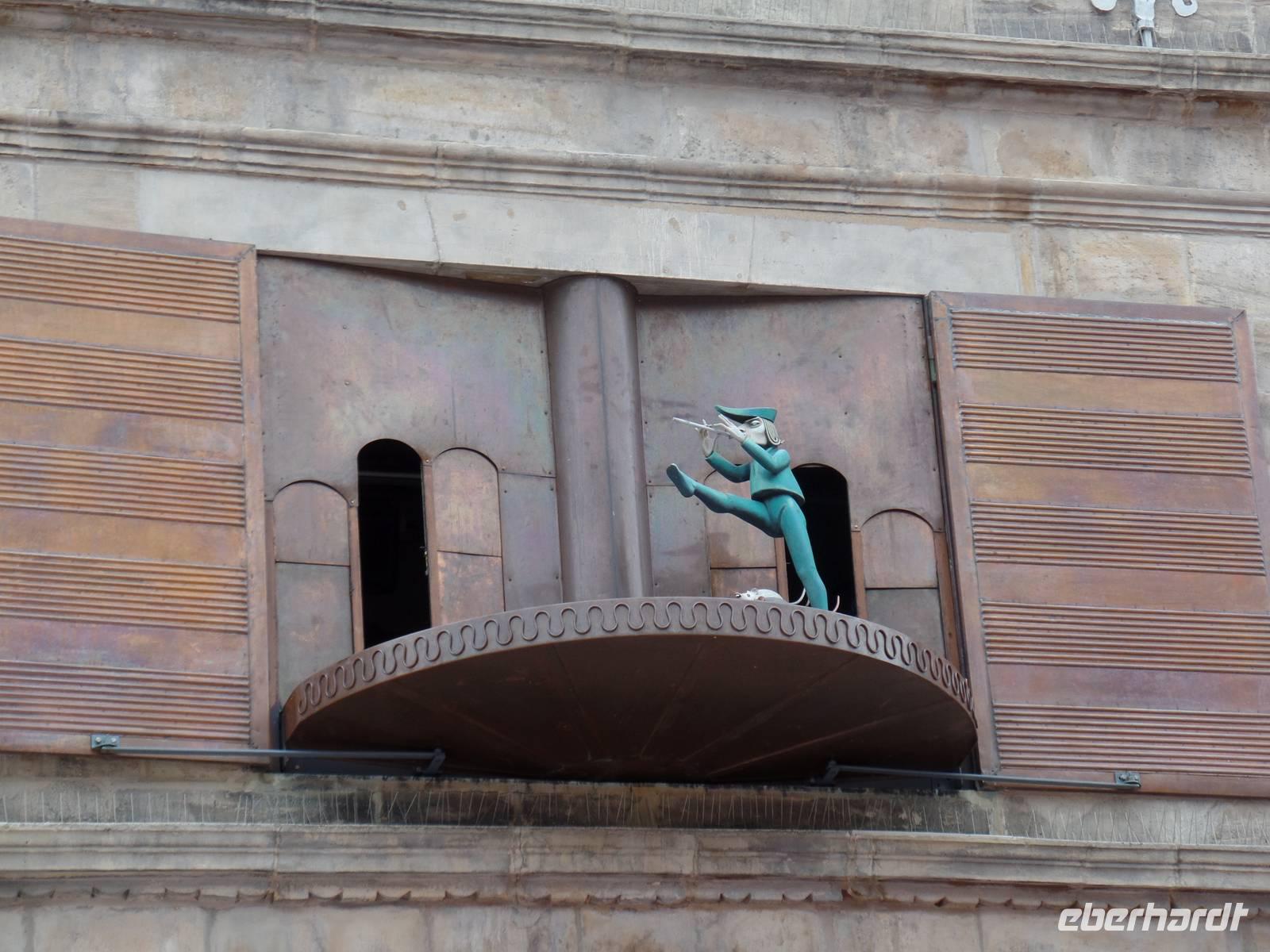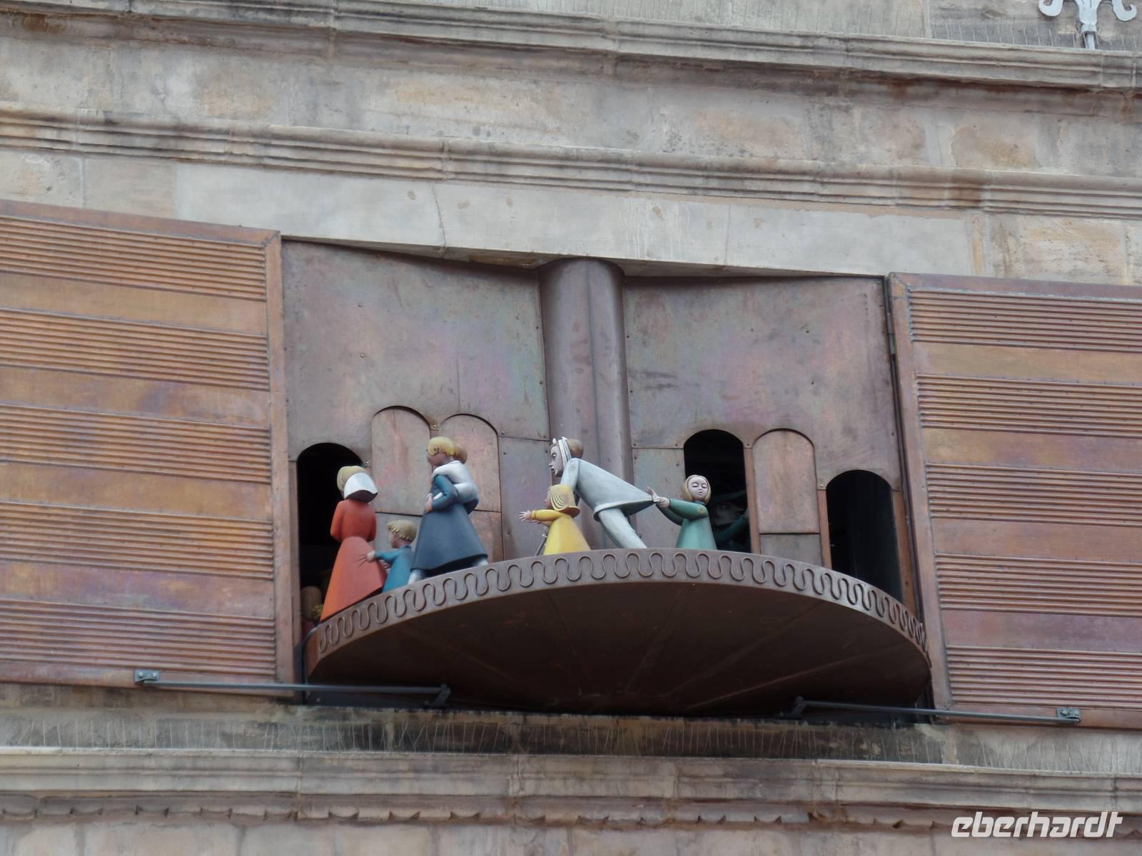3 mal täglich öffnet sich die Bronzetür und das Figuren- und Glockenspiel mit der Rattenfängersage ist zu sehen.