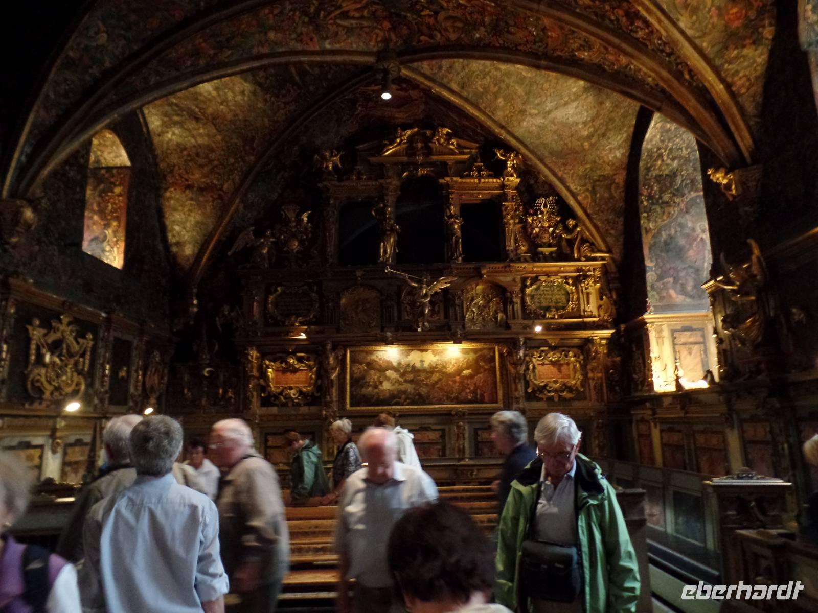 Bei einem Rundgang, im zugänglichen Teil des Schloßes, erfuhren wir alles über die lange Geschichte des Fürstenstammes, dessen Wappen eine Rose ist.