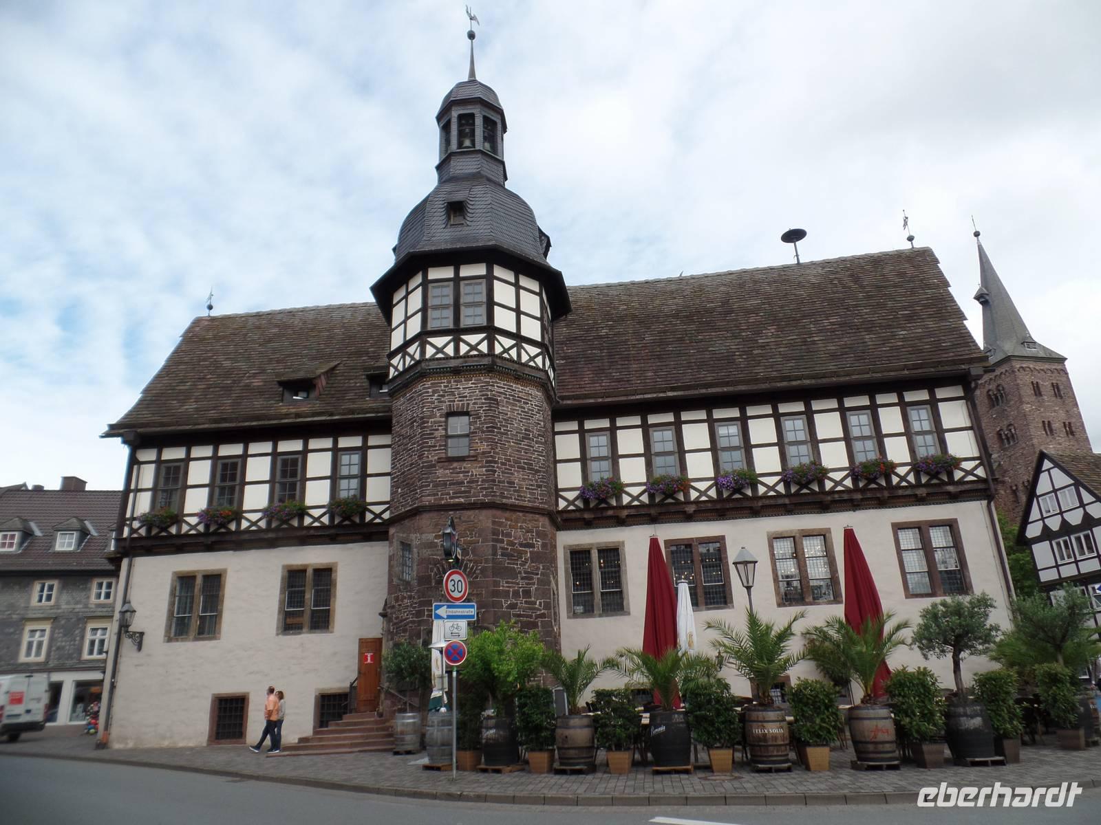 Sehenswert ist auch das Rathaus, eine Mischung aus gotischem Unterbau und Fachwerkgeschoß.
