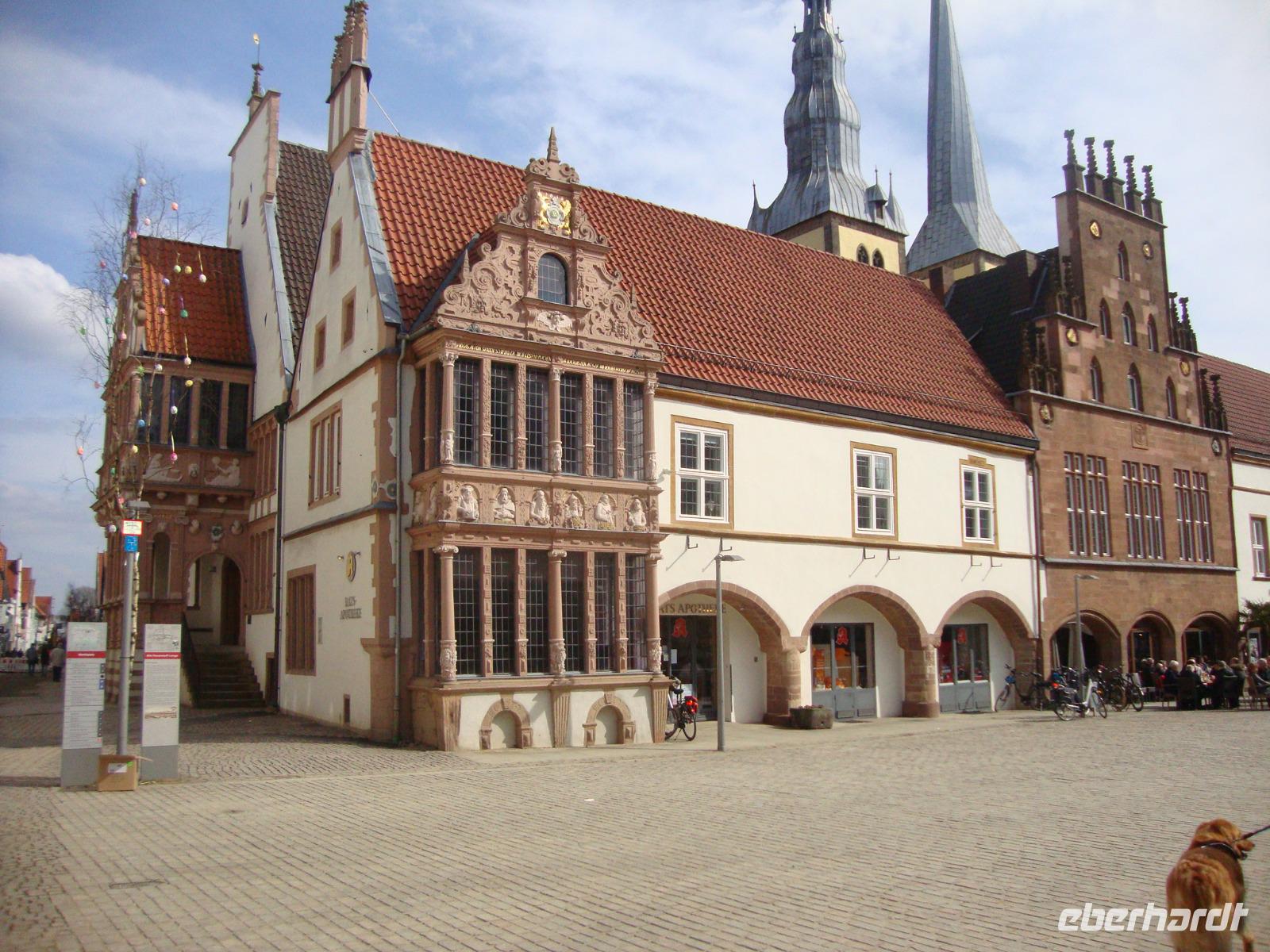 Wie meistens, begann unsere Osterreise auch dieses Jahr in Dresden. Hier stiegen voller Erwartungen die ersten Gäste zu und freuten sich auf schöne Tage zu Ostern im Teutoburger Wald. Quer durch Thüringen, wo die letzten Gäste zustiegen ging unsere Fahrt anschließend durch das schöne Werratal. in Hessisch-Lichtenau gab es feine Würstchen zur Stärkung und anschließend setzten wir unsere Fahrt fort. Vorbei an Kassel erreichten wir das Eggegebirge und den südlichen Teutoburger Wald. Pünktlich trafen wir in Lemgo, der alten Hansestadt ein. Hier wurden wir von unserem Gästeführer, Herrn Rossmann, freundlich begrüßt und wir begaben uns auf einen Spaziergang durch die Altstadt: Stein -und Fachwerkhäuser säumen die Mittelstraße; in der Hamelner Straße zieren fantastische Schnitzereien das Junkerhaus. In der um 1200 gegründeten späteren Hansestadt begab man sich im 16.Jh. unerbittlich auf Hexenjagd. Das Hexenbürgermeisterhaus erinnert an den Bürgermeister Hermann Cothmann (1629 - 1683). In seine Amtszeit fiel die letzte Welle der Hexenverfolgung in Lemgo. Er selbst galt als ein besonders eifriger Hexenjäger. Als wir uns von Herrn Rossmann herzlich verabschiedeten, hatten alle Gäste noch Gelegenheit eine Tasse Kaffee zu trinken oder ein Eis zu genießen.
