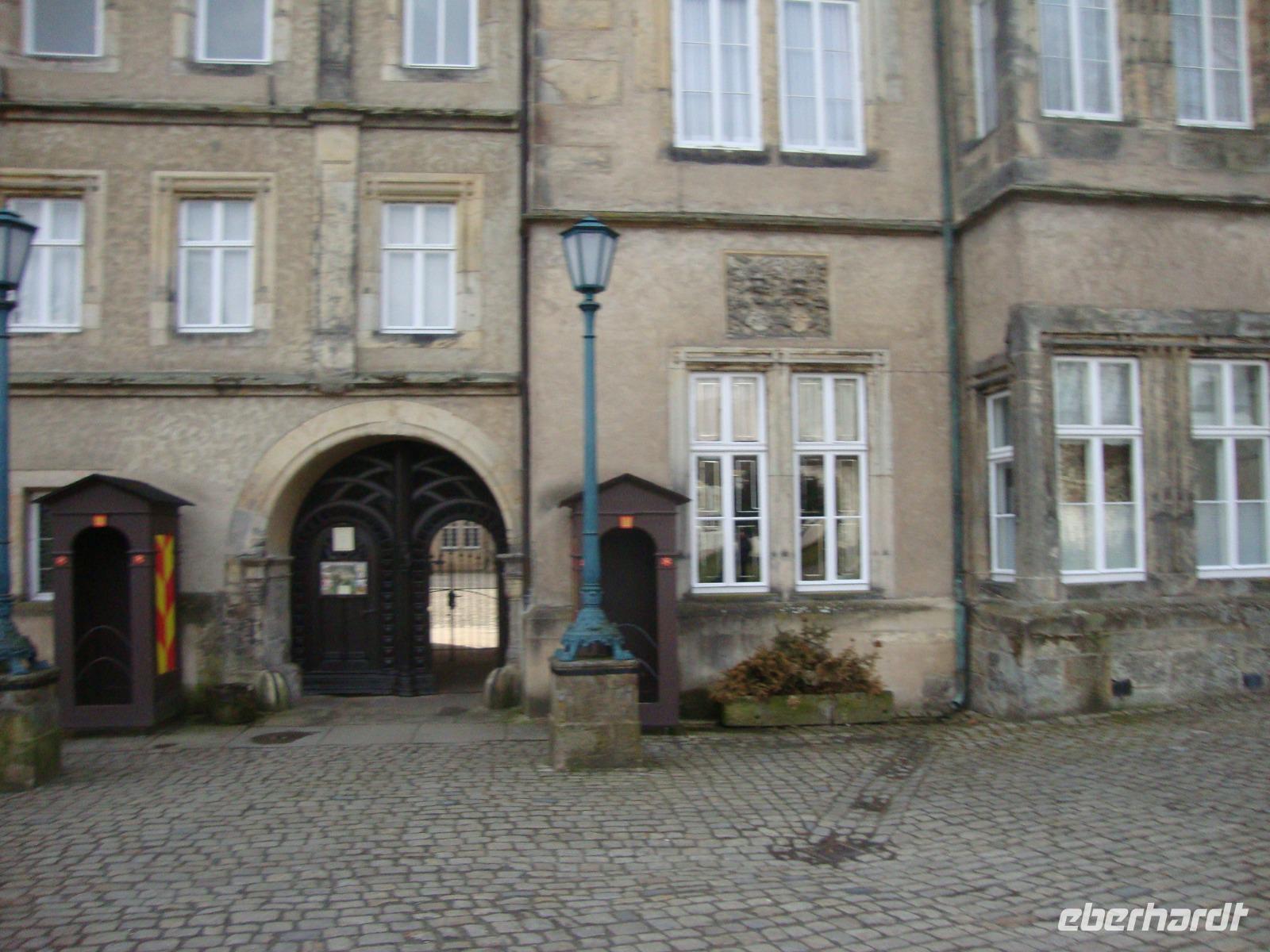 Danach ging unsere Fahrt nach Detmold: "Lippe - Detmold, eine wunderschöne Stadt..." besingt der Volksmund die ehemalige Residenz von Grafschaft und Fürstentum Lippe (bis 1918) deren Wappen eine Rose ziert. Gut 500 Baudenkmäler, darunter malerisches Fachwerk in Adolfstraße und Krumme Straße, fügen sich zum Gesamtkunstwerk. Der Marktplatz prunkt mit spätgotischer Erlöserkirche, Donopbrunnen und klassizistischem Rathaus. Bei unserem kleinen Stadtrundgang waren die Straßen um den Markt voller Menschen, welche die ersten Sonnenstrahlen genossen. Überall herrschte geschäftiges Treiben. Anschließend besuchten wir das fürstliche Residenzschloss. Bei einer interessanten Führung, im aus dem 16.Jh. stammenden Weserrenaissancebau, konnten wir uns von der prächtigen Ausstattung beeindrucken lassen. Es beherbergt neben Jagdwaffen und Porzellansammlungen barocke Gobelins, die um 1670 in Brüssel gewebt wurden und Szenen aus dem Leben Alexander des Großen (365 . 323 v.Chr.) zeigen.