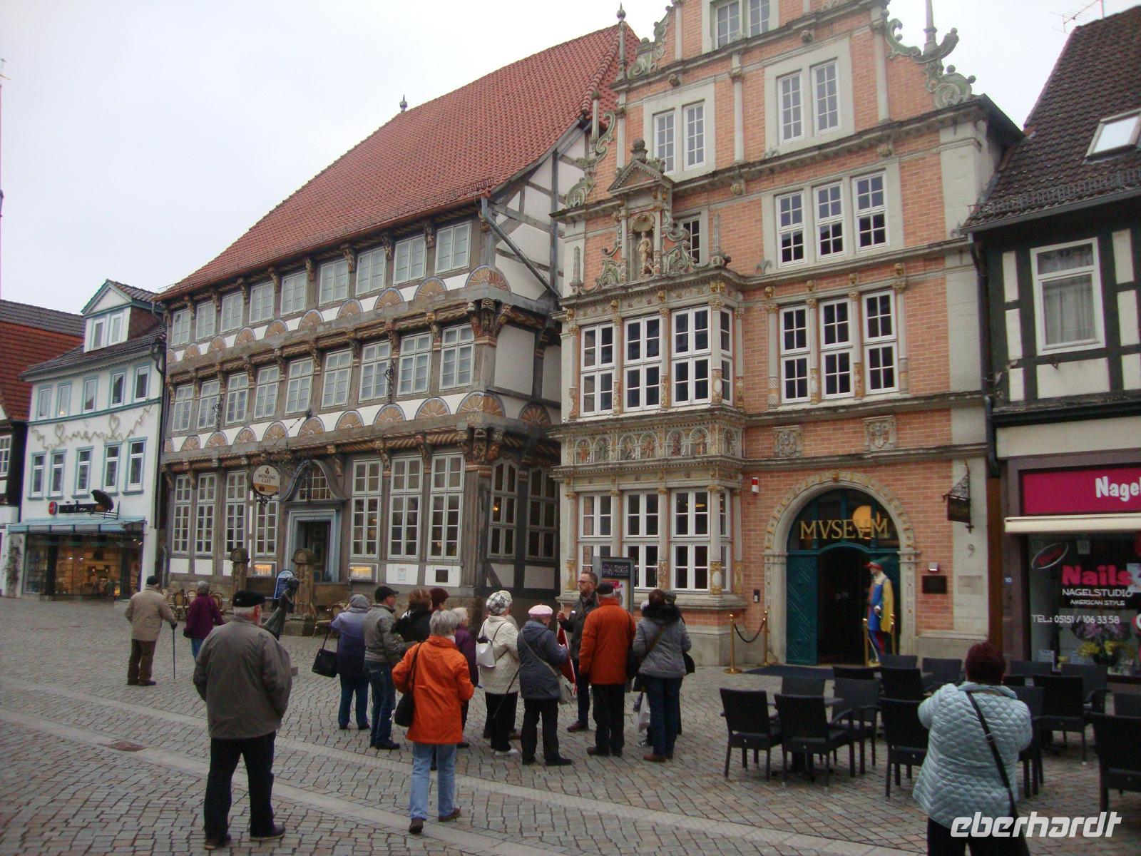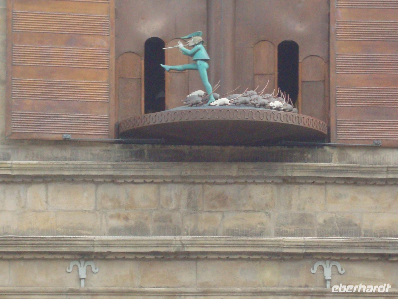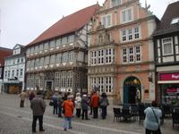 Am Morgen, als wir in die Rattenfängerstadt unterwegs waren, schneite es. Aber als wir in Hameln ankamen, schien die Sonne, zwar noch bei eisigem Wind und niedrigen Temperaturen. Doch das tat der Stimmung keinen Abbruch, denn der Osterhase hatte für jeden Gast eine kleine Überraschung bereit. In den nächsten 1,5 Stunden lernten wir die historische Altsadt kennen. Unsere jungen, freundlichen Gästeführer, Herr Deichsel und Herr Rekate, berichteten über die Historie und zeigten uns die bekanntesten Sehenswürdigkeiten. 1284 suchte eine Rattenplage Hameln heim, weshalb ein Flötenspieler angeheuert wurde, um die Nager zu vertreiben. Doch blieb man dem Kammerjäger seinen Lohn schuldig - der erneut die Flöte blies und 130 Kinder außer Ortes führte. Im Westgiebel des Hochzeitshauses läutet täglich 13.05., 15.35 und 17.35 Uhr ein Glockenspiel zur Rattenfängersage. Natürlich haben wir uns das Glockenspiel angesehen. Am Nachmittag waren wir in unserem Hotel "Bärenstein" zum österlichen Kaffee trinken mit hausgebackenem Kuchen eingeladen, welcher vorzüglich schmeckte.