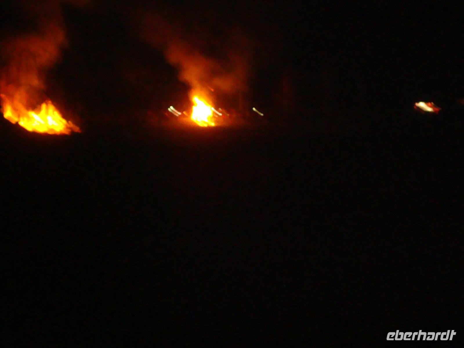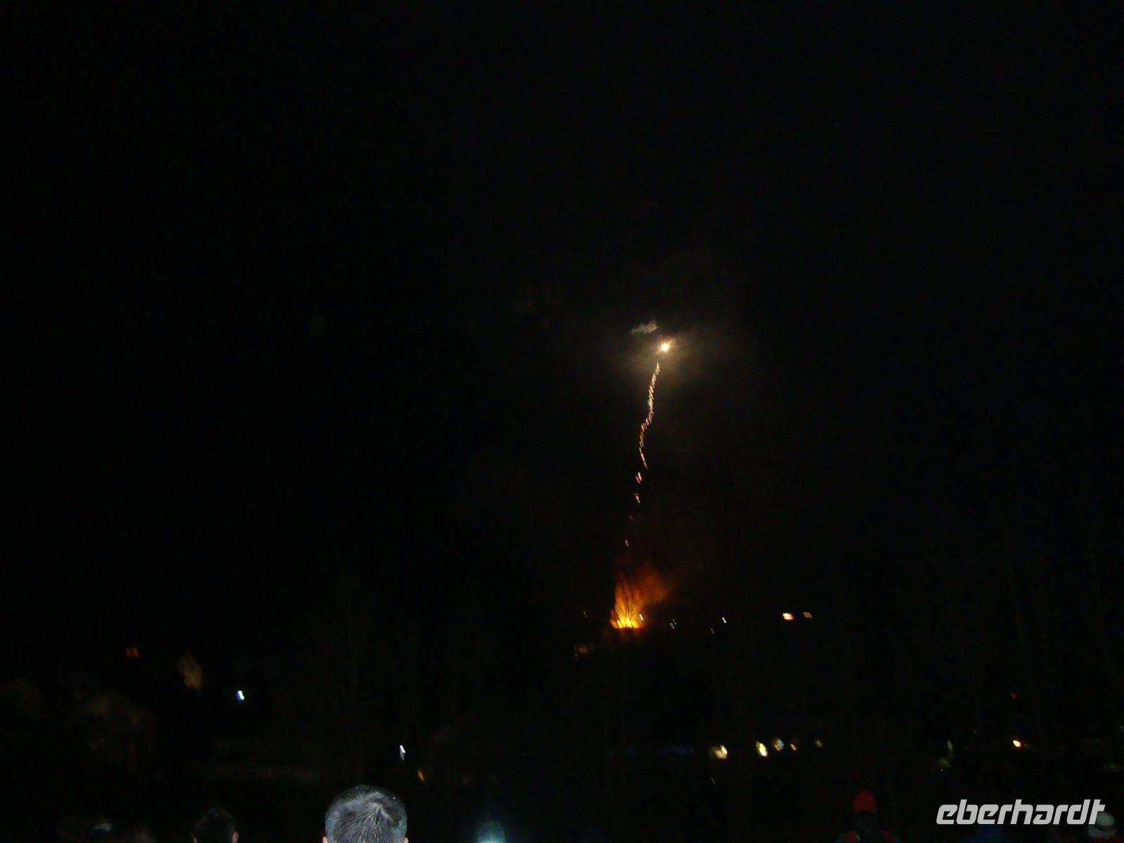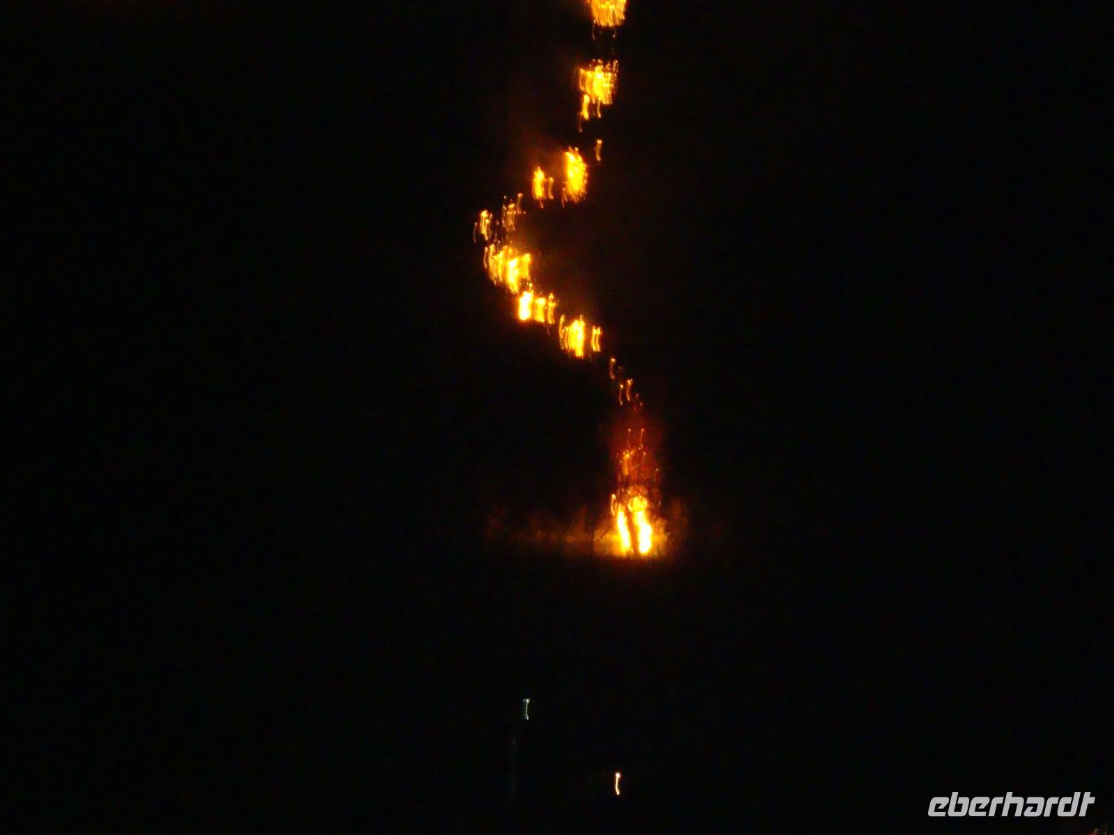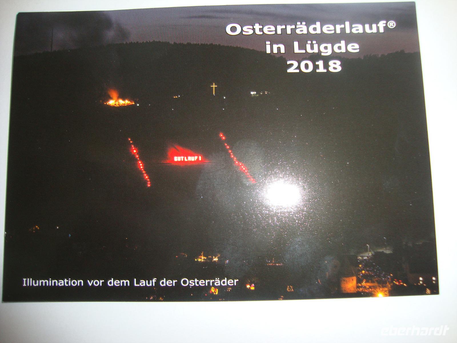 Der Höhepunkt unseres Programms folgte am Abend. Es waren geschätzt ca. 5000 Zuschauer in Lügde, um das Spektakel des Osteräderlaufes zu erleben. Das Volksfest beginnt schon am Nachmittag im Emmerauenpark.Das osterfeuer wird auf dem Osterberg angezündet. Am 35 m hohen Osterkreuz geht das Licht an. Wenn es dunkel ist, gegen 21.00 Uhr, wird das erste Rad zum Startplatz gerollt Das Licht des Osterkreuzes erlischt, ein Schuss aus der Kanone wird abgefeuert. Dann stecken die Dechen (Brauchtumswärter) das Rad oder genauer das Stroh mit Fackeln in Brand. Ein beidseitiger Schubs mit der Balancierstange und das lichterloh brennende Osterrad macht sich auf den Weg ins Tal hinab. Dabei springt es über Unebenheiten hinweg und das herausfallende Stroh hinterlässt eine lodernde Spur. Wenn alle 6 Räder bis ins Tal rollen, soll die kommende Ernte gut ausfallen, sagte man früher. Ein prächtiges Feuerwerk bildet den Abschluss dieses gewaltigen Spektakel.