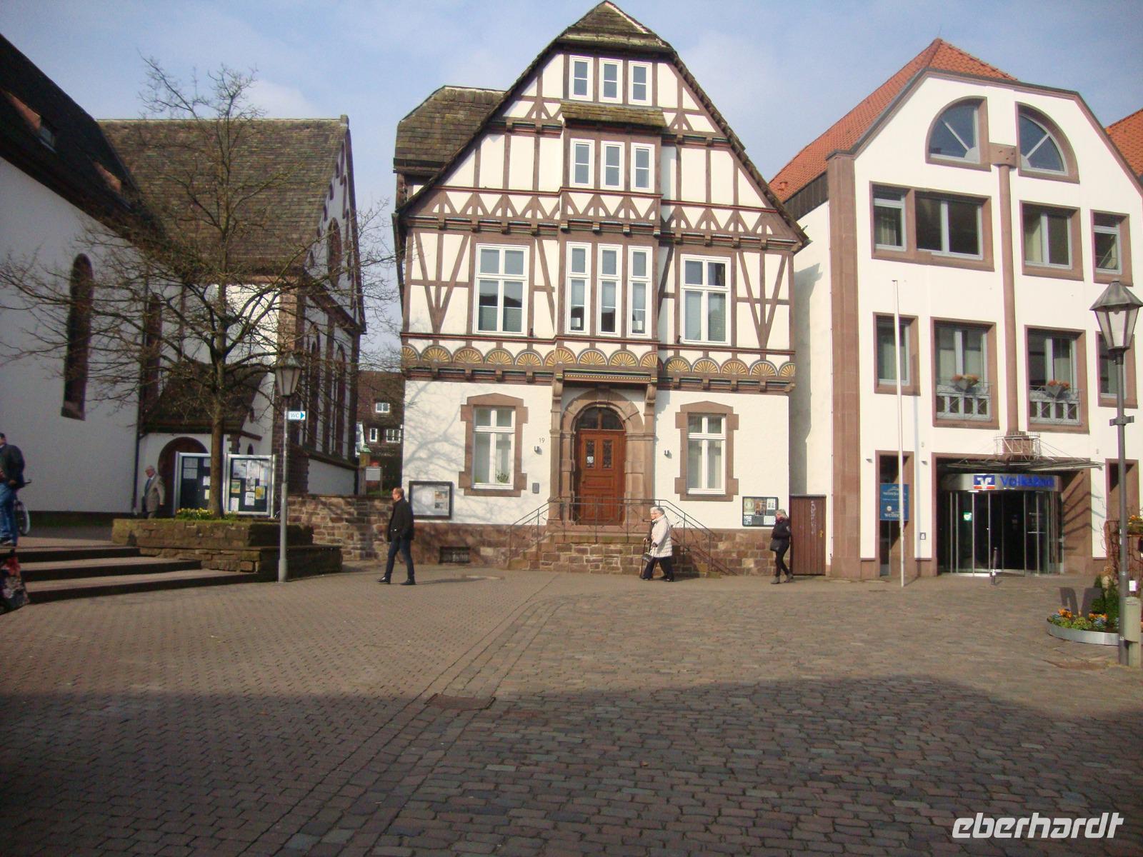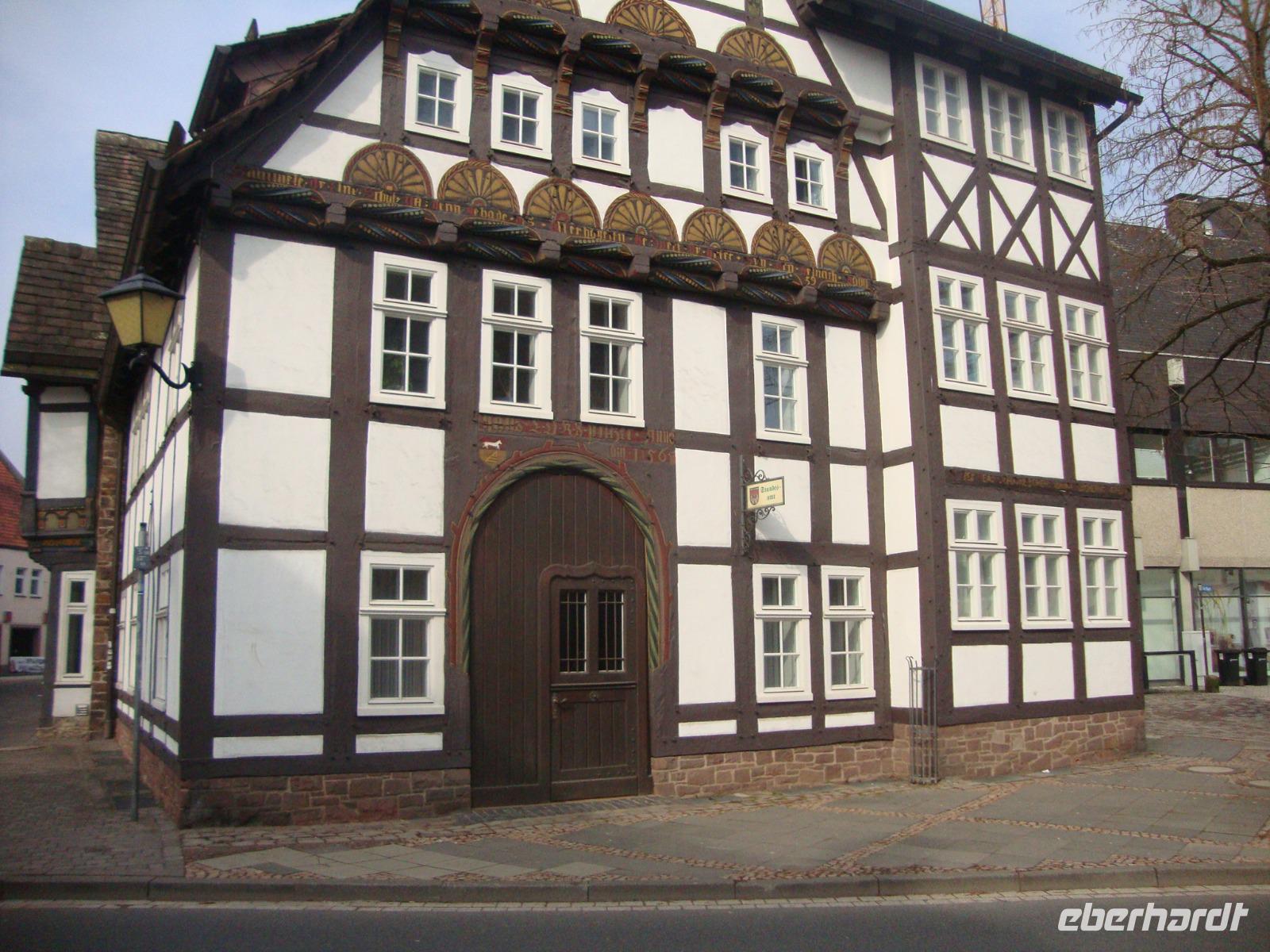 Bei schönem Wetter mit viel Sonnenschein traten wir unsere Heimreise an. Eine Menge malerisches Fachwerk wartet in Höxters Altstadt, unserem ersten Ziel. Das historische Rathaus wurde 1610 - 18 im Weserrenaissnace-Stil umgebaut. Die Fassaden des Adam-und-Eva-Hauses aus dem 16.Jh. ziert eine Holzschnitzerei des Sündenfall-Paares. Die Ursprünge der Kirche St.Kiliani mit dem Doppelturm liegen im Jahr 1075. Auch befindet sich hier das Denkmal des Dichters Hoffmann von Fallersleben, des Dichters unserer Nationalhymne. Sein grab befindet sich im Kloster Corvey.