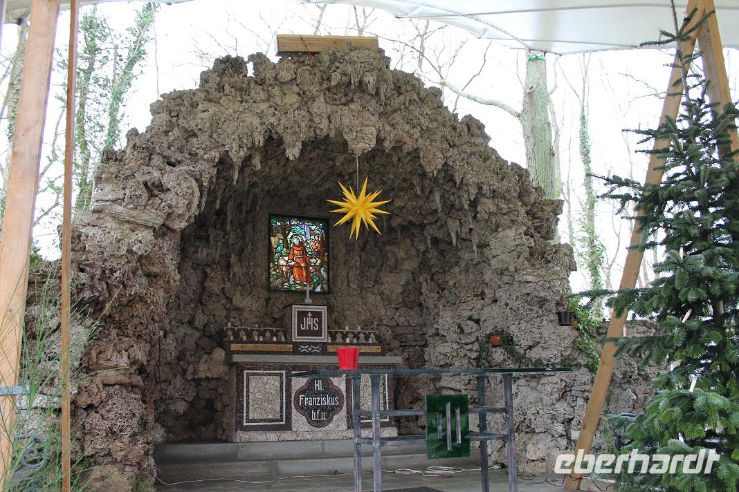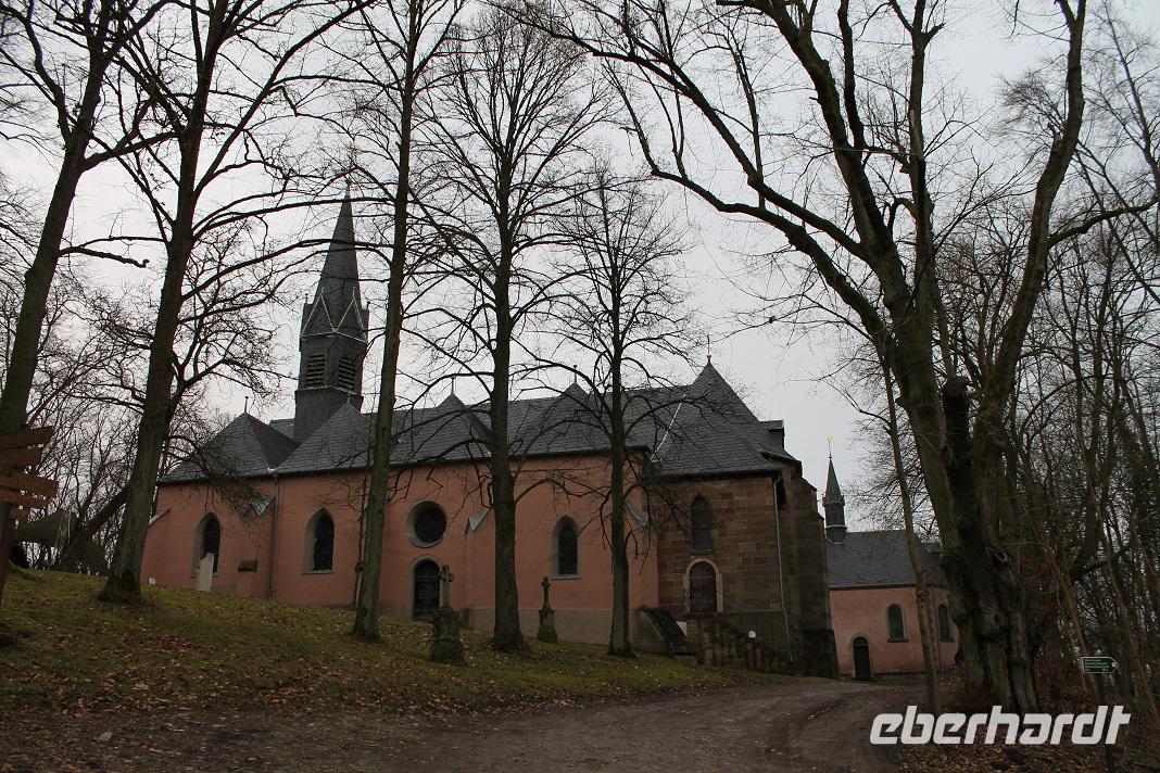 Unser viertes Ziel des Krippenweges war die Kirche auf dem Hülfensberg. Hier wurden wir überrascht von einer Krippe aus mit Stoff bekleideten Figuren. Nur über einen steilen Anstieg und zu Fuß konnten wir diese Wallfahrtskirche „Christus der Erlöser" erreichen. Aber die Mühe hatte sich gelohnt.