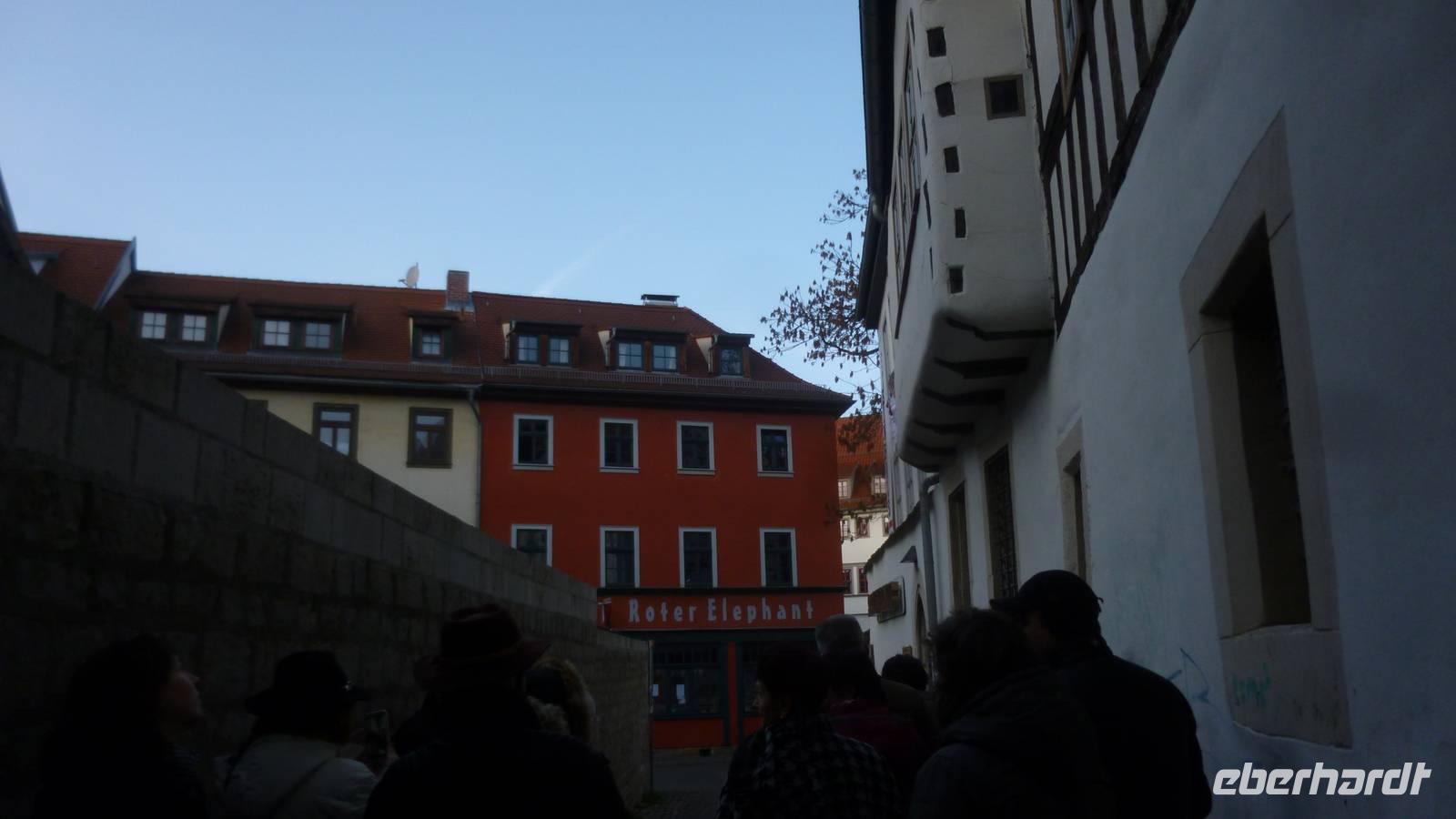 Nach einer kleinen Mittagspause treffen auch schon unsere Stadtführer im Lutherkostüm ein. Wir werden geleitet durch die engsten Gassen und bedeutensten Ecken Erfurts und erfahren sehr viel über Martin Luther und die Geschichte der Stadt.